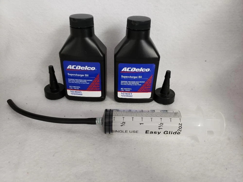 Two Supercharger Oil w/ Syringe 4 ounce Bottle Eaton Coupler change kit for GM This Listing Contains: 2 SUPERCHARGER OIL 1 SYRINGE ITEM DETAILS PART TYPE CONDITION MANUFACTURER PART NUMBER Supercharger Oil Brand New AC Delco N/A Please check fitment in ebay compatibility table This product is warehoused in California, USA. We will be shipping out the item within 1 business day. If you make an order and pay before 1 pm PST on business day, we will most likely ship out the item the same day! USPS is our preferred carrier. The item usually arrives within 1-5 days after shipped. Other faster shipping option is available on request with additional cost. Email us for pricing to your zip code/country. We ship to PayPal confirmed address only. Please make sure your PayPal address is up-to-date. 1. We accept payment via PAYPAL only . 2. Payment should be made within 30 days of auction closing. 3. Total amount due includes the final auction price plus S&H (Shipping and Handling). 4. S&H will be determined based upon the SHIP TO address. PLEASE NOTE: S&H does not include duties, local taxes or any other import fees. 1.We accept return in 30 days and appreciate communication in advance! 2.You must contact us to request a Return Authorization Number (RA#) before you send anything back. Any packages returned by buyer Without Communication WILL NOT be handled . With RA#, we may address return issues with high efficiency. Without RA#, we may fail to find your transaction. We appreciate your understanding! 3. All returned items should be in the original packaging and you need to provide us with the shipping tracking number, specific reason for the return, and your eBay ID. 4. Replacements or refund should be concluded before return. There is a 90 day manufacturer warranty , defective items must be reported and returned to us within the warranty period (excluding items damaged and/or misused after receipt). We will not refund any labor costs in incurred by you or the installer of the products purchased at this website We maintain high standards of excellence (five stars review) and strive for 100% customer satisfaction! FEEDBACK IS VERY IMPORTANT TO US. We request that you contact us immediately BEFORE you give us neutral or negative feedback, so that we can satisfactory address your concerns. It is impossible to address issues if we do not know about them! Interchange Please review our interchange above in the compatibility table to verify proper fitment of your vehicle. Or contact us for a quick response. Keep in mind interchange tables apply only to American Market vehicles. If you live outside of the USA please research and verify it fits your vehicle before purchasing. APPLICATIONS Visit My eBay Store: RPM Auto Parts of Costa Mesa CA