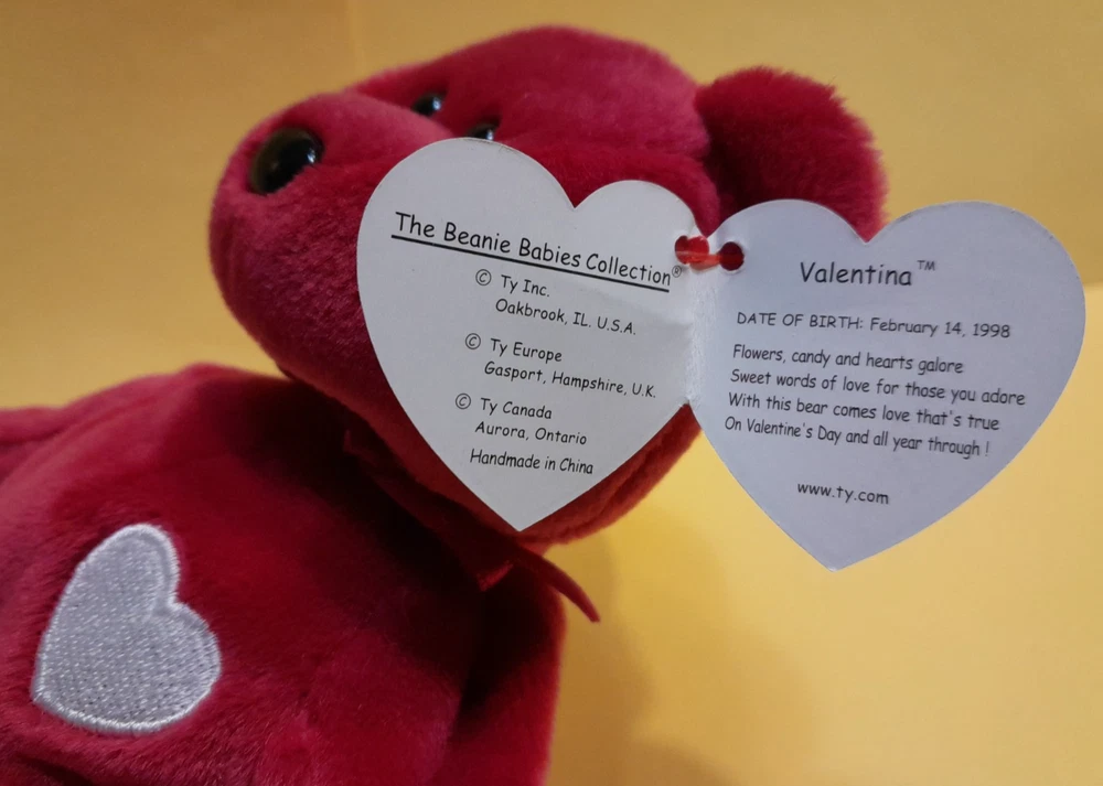 Ty Beanie Baby, Valentino & Valentina. Mint condition. Valentino's birthday is February 14,1994. Valentina's birthday is February 14, 1998. Valentino is filled with the PVC pellets. Valentina has PE Pellets. Ty