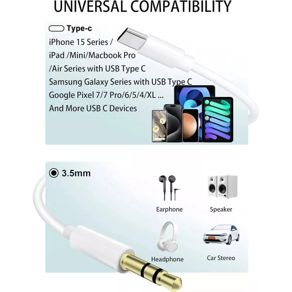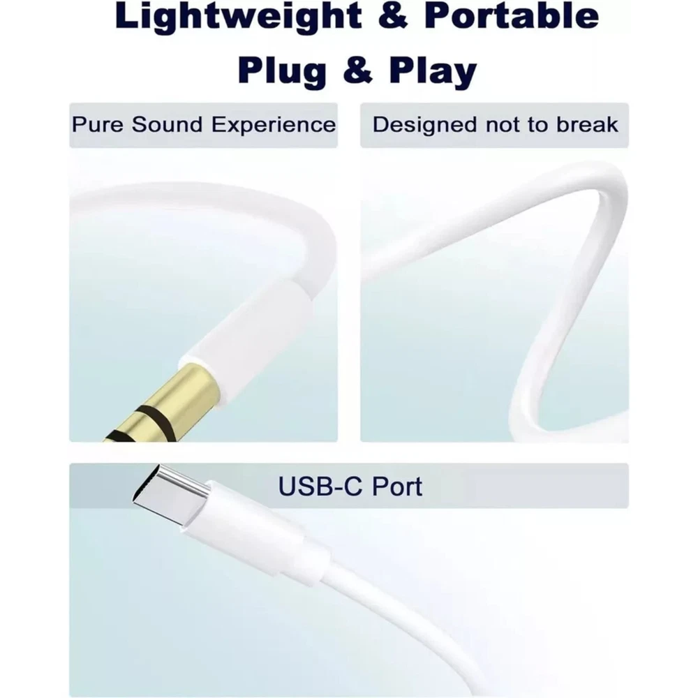 Type C to Aux Cable USB Type-C Male To 3.5mm Cord Car AUX Music Audio Adapter Features: Clear Sound: Corrosion resistant 3.5mm connector and high-polished aluminum port. Transmits sound stably and seamlessly. No fuzzy noise. Plug & Play: Plug and play. No Bluetooth or drivers required. Quickly connects your smartphone, MP3 player, tablet, or other portable audio devices with a 3.5mm audio jack (i.e. headphone jack) to the AUX-in port of your car stereo, home stereo, portable speaker or other compatible audio-output device. Cable length: 3 Feet Compatibility: Compatible with almost all Phones with a type C port, car stereos, home stereos, portable speakers, headphones, headsets, MP3 players, computers, or anything else with a 3.5mm input jack. Package Includes: 1 x Braided Type-C to 3.5mm Aux Cord (Choose Color from Options) Shipping: We ship everyday Monday - Friday. Item will be shipped within one business day of cleared payment. Item is shipped from New Jersey. Please make sure address is correct. We are not responsible for any wrong addresses provided. Address cannot be changed after order has been placed. PLEASE NOTE: We do not ship to freight forwarders or international forwarders unless order is over $9 or USPS ground advantage shipping option is selected at checkout.