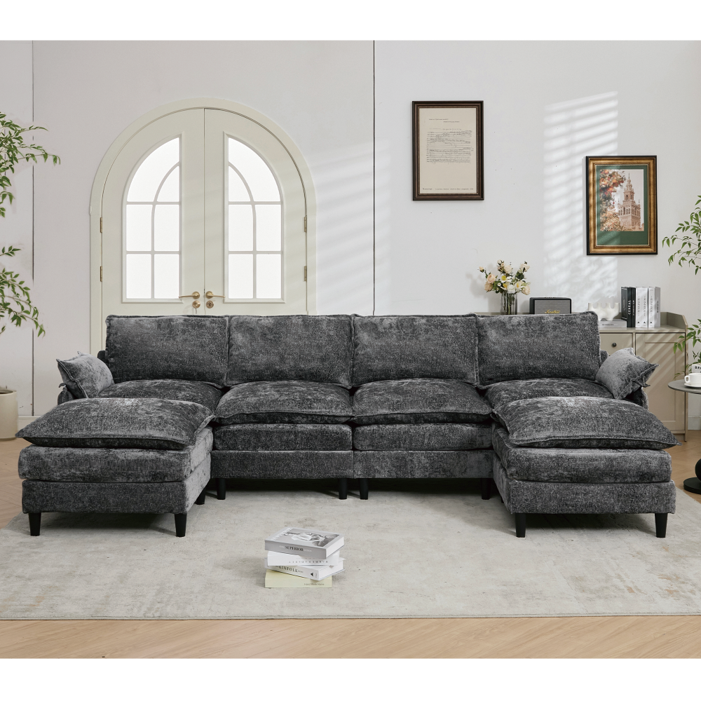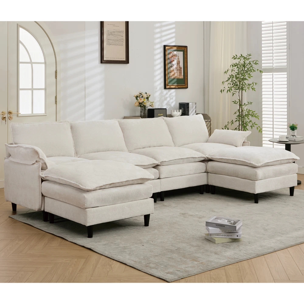 This U-shaped modular sofa is a game-changer for any living space! The ultra-soft chenille fabric feels luxurious against your skin while the high-density foam provides perfect support. I love how easily the pieces rearrange to create different configurations - perfect for movie nights or casual lounging. The reversible design means it always fits perfectly, whether I want an L-shape or full U-shape setup. Plus, the included armrest pillows add extra comfort for those lazy afternoon naps. It's stylish, versatile, and unbelievably comfortable - exactly what my home needed!