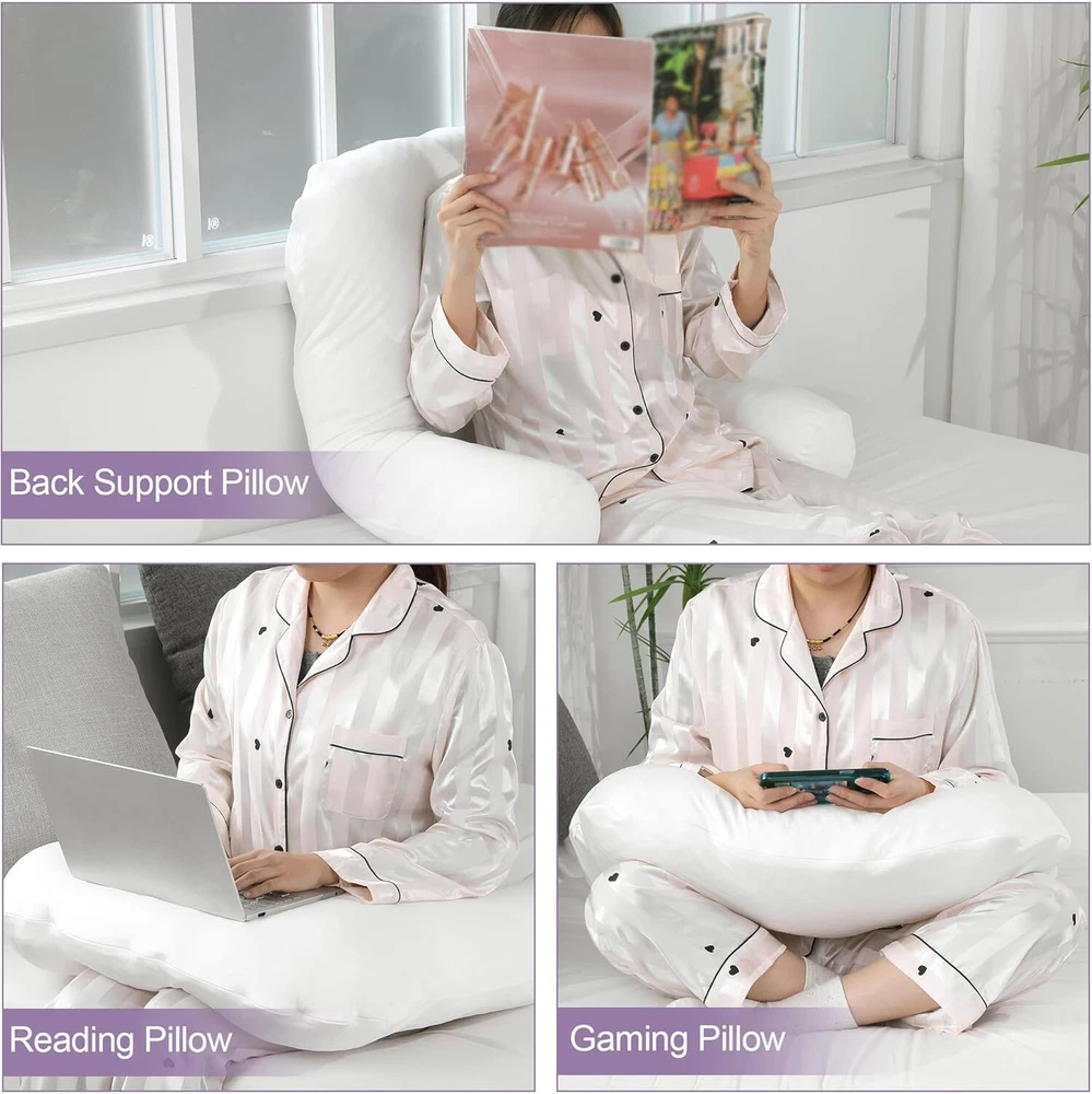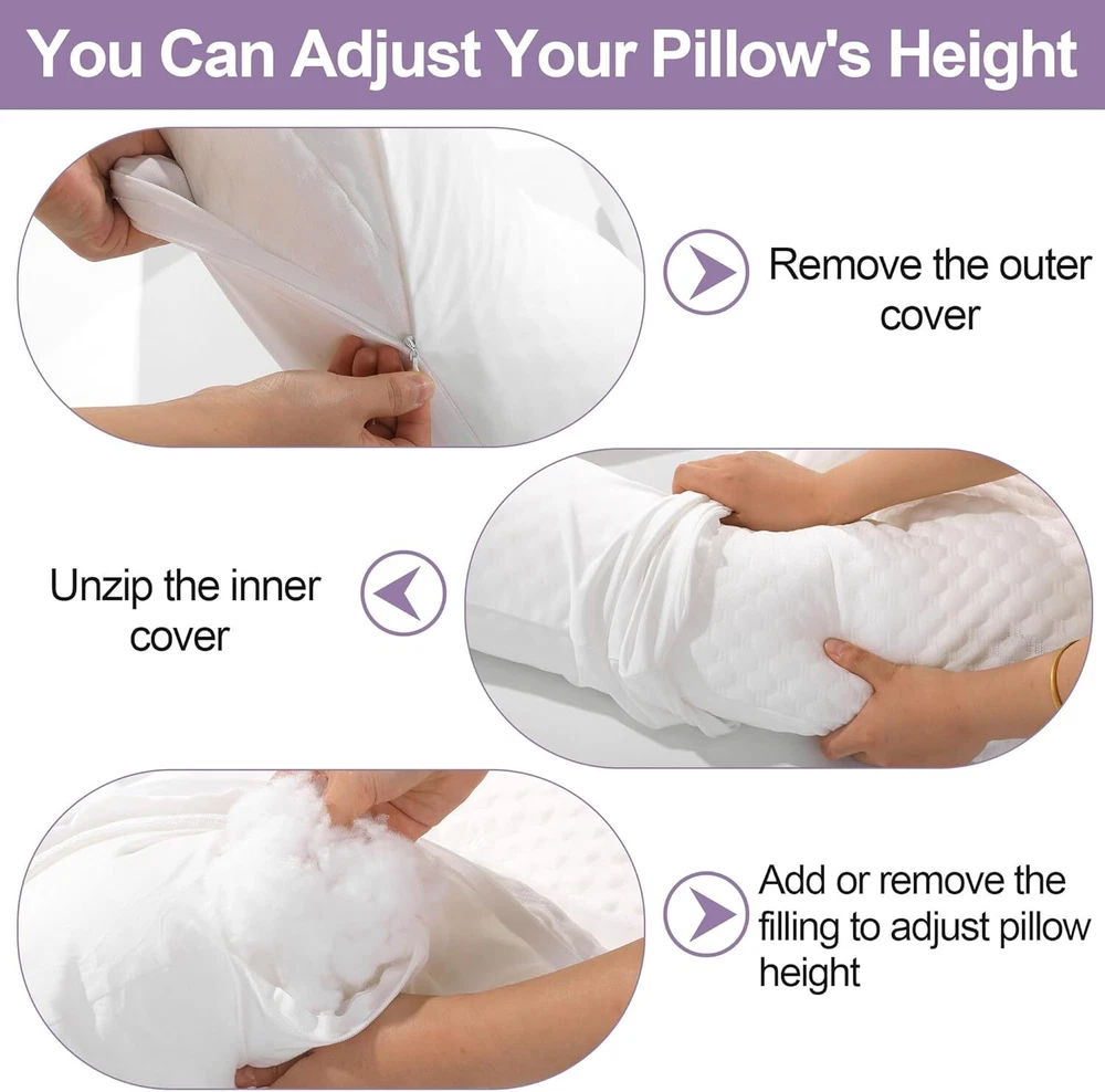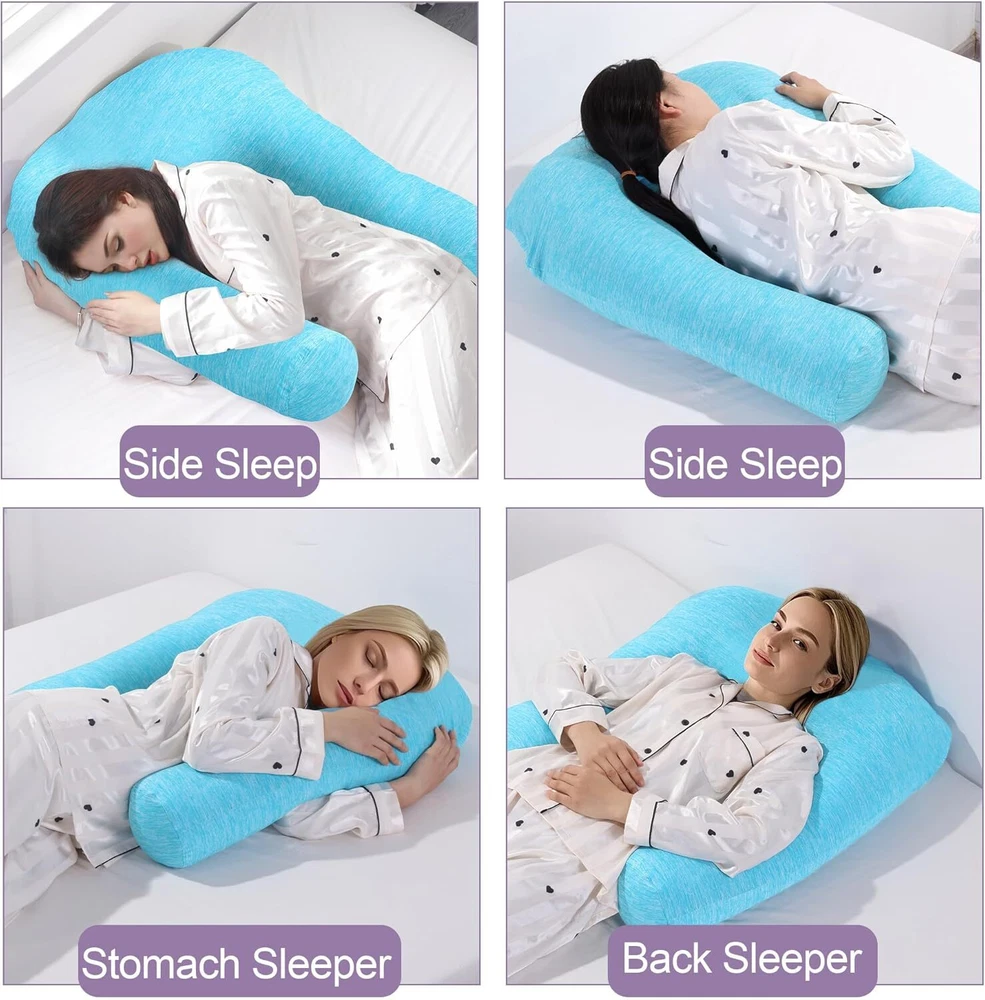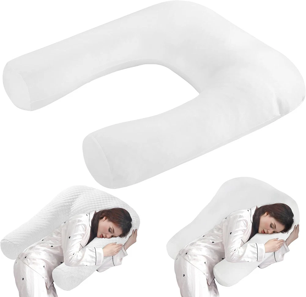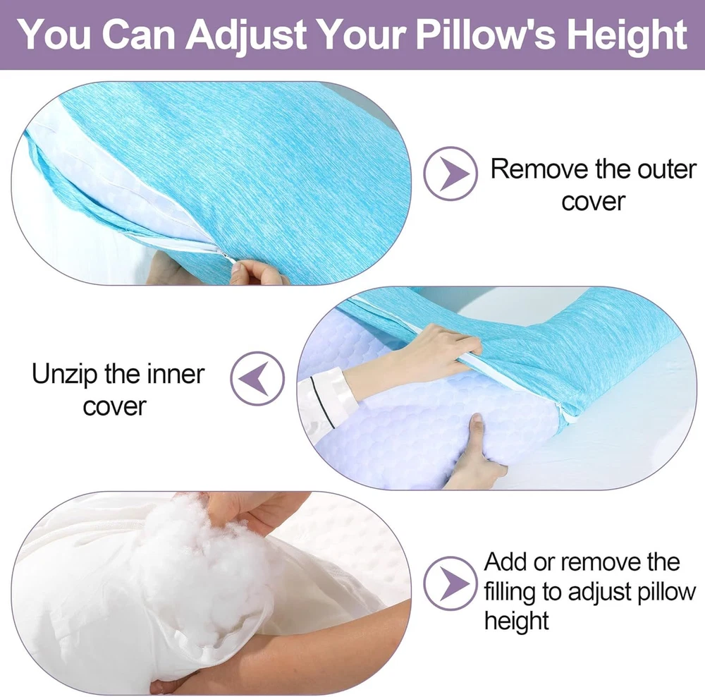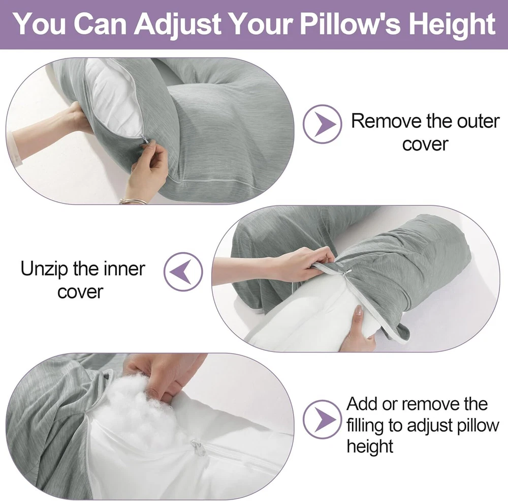【Product Information】:Adult size body pillow dimensions are 29.5 "L x 25.5 "W x 5.9 "H. Inner shell fabric is made of microfiber with 3D structural breathable design, outer pillowcase is cool-feeling fabric, filling with premium fluffy microfiber 【Cooling & Breathable Pillowcase】: orthopedic bed pillow is designed with 2 pillowcases, inner cover is suitable for all seasons, and special cold outer shell is designed for summer, you can change the cover by your needs. With this cold side sleep pillow, keep you cozy and fresh all night without sweating 【Ergonomic U Shape Body Pillow】:Supportive U pillows for adults just wipe you like a hug, and provide support for your neck, shoulder, arm and back. For a side sleeper whoes shoulder always afford presssure, this bed pillow is an ideal choice to reduce pressure for a better sleep 【Adjustable Cuddle Pillow】: Head, neck and arm areas designed individual pillow insert, with zipper design, the amount of stuffing can be personlized according to your needs. U-shaped design provides arm support, this shoulder sleeper pillow can be moved without affecting the turn over 【Care Instructions】: It's machine washable and easy to care. This pillow is compression packed, leave it for 48-72 hours after opening the package, it will expand and become fluffy 【Widely Application】: pillow is not only a side pillow, it's also a back sleeper pillow and belly sleeper pillow. For side sleeper, it's a pillow to hug while sleeping and provide arm support. Also you can use it as a neck pillow and shoulder support pillow