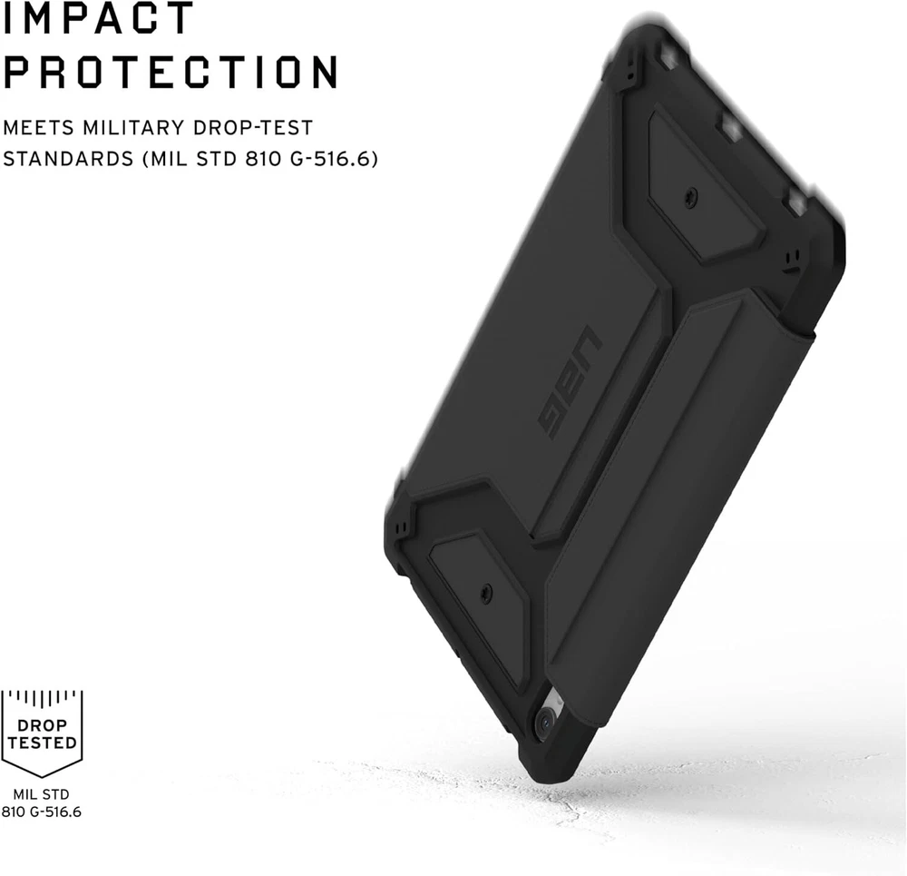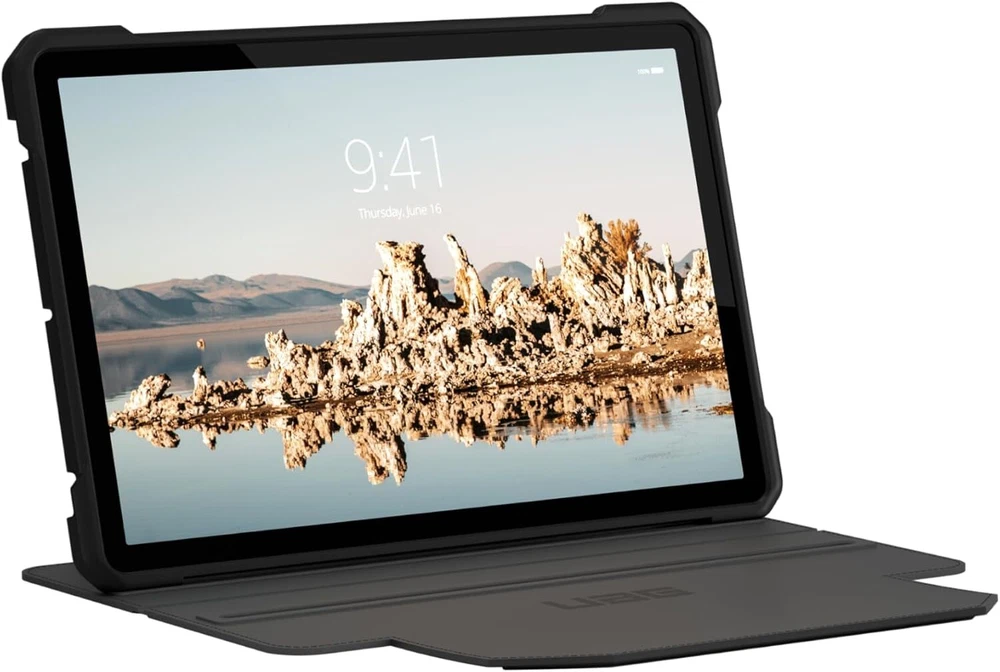 UAG Designed for Samsung Galaxy Tab S9 Case 11" 2023 SM-X710 Metropolis Black Product Details Brand: URBAN ARMOR GEAR Color: Black Compatible Devices: Tablets, Cameras, Laptops Form Factor: Case Shell Type: Soft LIGHTWEIGHT CONSTRUCTION: Our Samsung Galaxy Tab S9 case features a featherlight composite construction, a soft impact-resistant core, and enhanced corner protection providing top-of-the-line protection to withstand rugged conditions. ADJUSTABLE KICKSTAND: Auto wake/sleep folio cover that doubles as a multi-angle viewing kickstand to transform your tablet into a laptop with comfort and ease. Smooth to the touch exterior made with PU material provides both a great in-hand feel and a secure grip. Folio cover can withstand the use of daily cleaning wipes PRECISE FIT: Precise cutout with easy and full access to all buttons and ports. Soft-raised screen surround bezel to protect touchscreen and camera. S PEN STORAGE & PORTABILITY: Built-in S Pen holder and S Pen magnetic charging access. Shoulder strap tether anchor points for added portability (shoulder strap and stylus tether NOT included). MILITARY DROP PROTECTION: Meets Military drop-test standards (MIL STD 810G 516.6) Metropolis SE Series features a tough and rugged silhouette that provides your tablet with unbeatable protection. Featuring a featherlight composite construction and a soft, impact-resistant core to shield your tablet from serious drops from serious heights. Impact-resistant corners to shield your tablet from scratches and dents from accidental drops or falls. The folio cover doubles as a multi-angle stand to transform your tablet into a laptop with ease quickly. Soft touch and smooth PU exterior that can withstand the use of daily cleaning wipes. Thoughtful shoulder strap tether anchor points for the use of an adjustable shoulder strap (shoulder strap and stylus tether NOT included) for when your tablet is not in use or for transport. The perfect case for kids and people that rely on their tablets on the go.