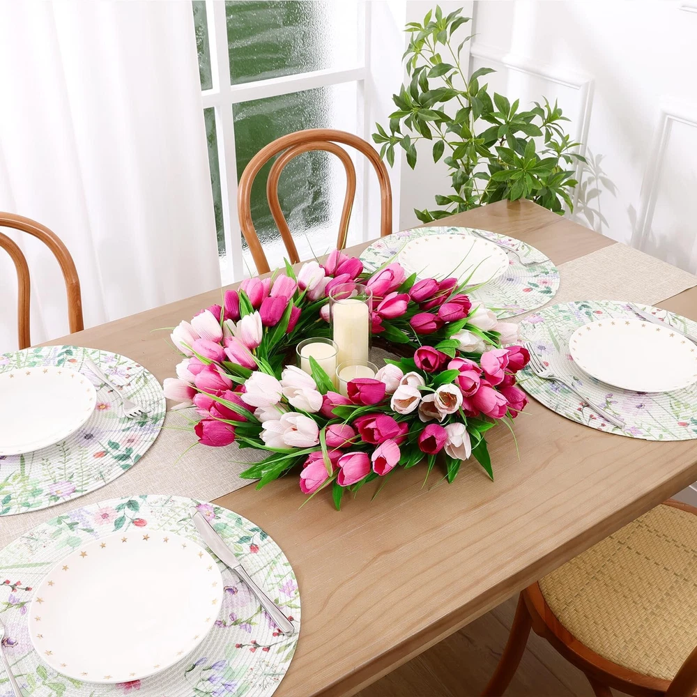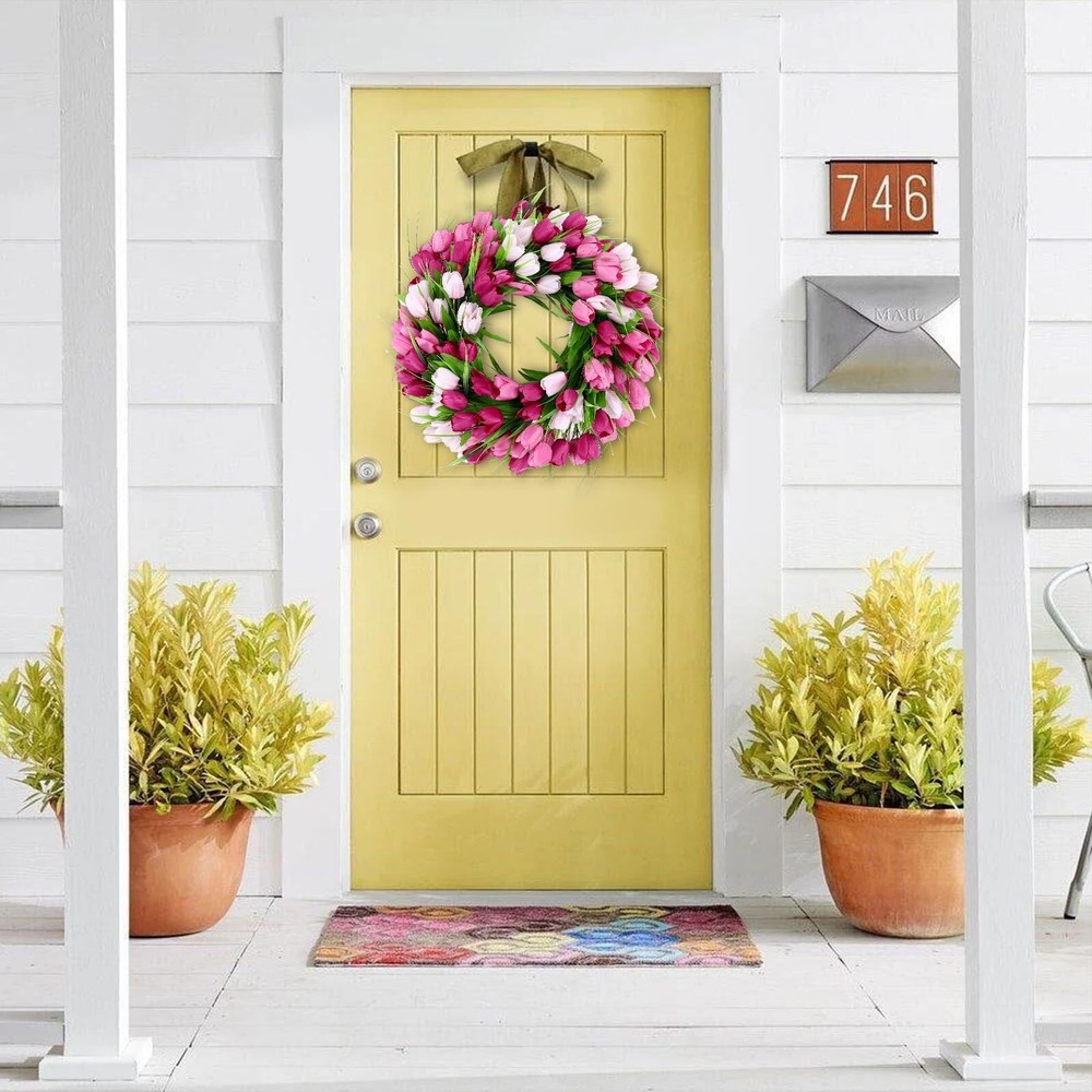 U'Artlines 20 Inch Tulip Wreath for Front Door, Spring Summer Silk Wreath with Green Leaves Artificial Tulip Flower Wreaths for All Seasons Window Wall Wedding Valentines Day Decor Product Details Color: Pink Brand: U'Artlines MPN: Does not apply UPC: Does not apply EAN: Does not apply Color: Pink Brand: U'Artlines Material: Silk, Rattan Shape: Round Item Weight: 0.54 Kilograms Product Dimensions: 20"D x 20"W x 6"H Manufacturer: U'Artlines Color: Pink Brand: U'Artlines Material: Silk, Rattan Shape: Round Item Weight: 0.54 Kilograms Product Dimensions: 20"D x 20"W x 6"H Manufacturer: U'Artlines Item Weight: 1.2 pounds Country of Origin: China Date First Available: October 12, 2022 Handmade Tulip Wreath: This artificial tulip wreath is made of silk, rattan and silk flowers, accented with brown durable twigs vine, The visual effect is realistic enough to make your home decoration come alive Perfect Size: Front door wreath measures about 20inch/50cm in diameter, large wreath size will meet your DIY decor needs, will bring an enjoyable ambiance all year round, make for a timeless home decor wreath Widely Used: The decorative flower wreath can be used for indoor or outdoor, is great for the front door, porch, fence, windows, wedding, table, wall decor, fireplace and more Ideal Present: Spring summer door wreath is bright in color, perfect gift for a birthday, anniversary, wedding, Valentines Day, Easter, Mothers Day, Fathers Day or housewarming No Maintenance: Farmhouse wreath no hassles with needle clean up or maintenance required, even if installed on an outdoor door, it can last for a long time and will look great for years to come
