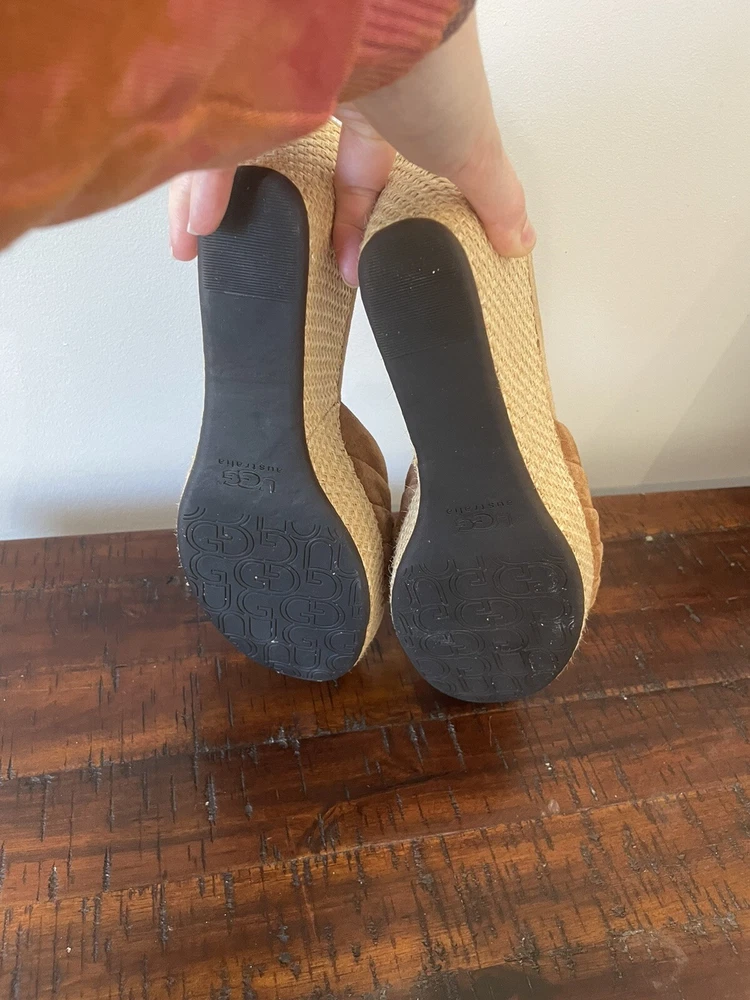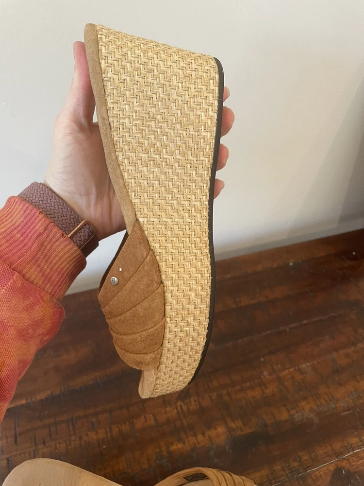 UGG 8.5 Sandal Espadrille Wedge Eirene Brown Slides Suede