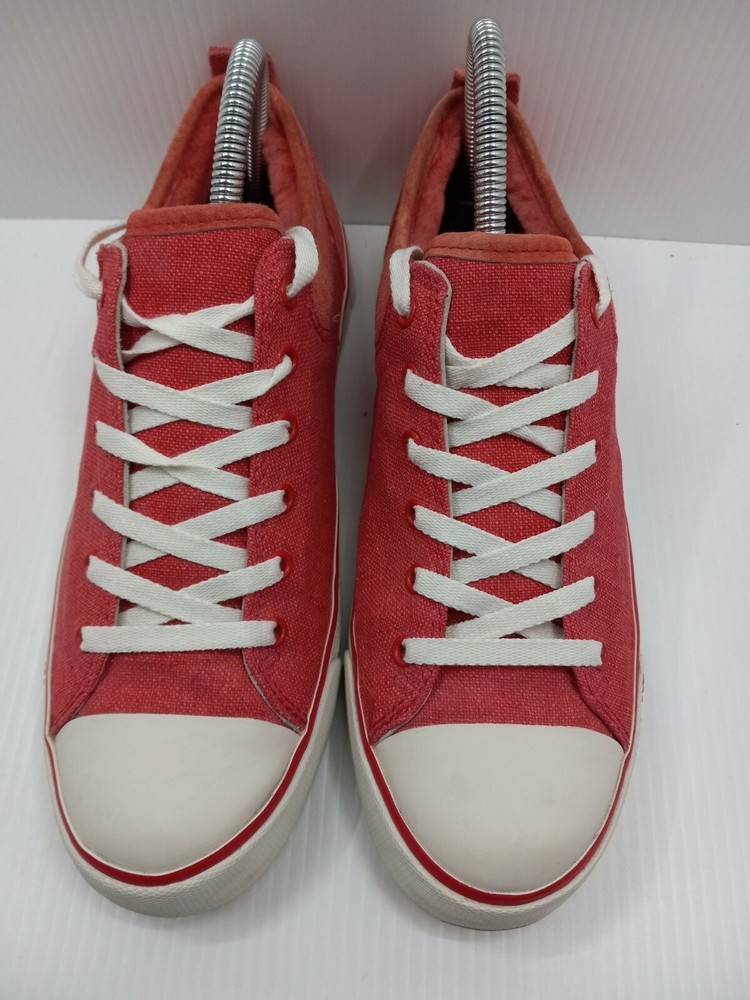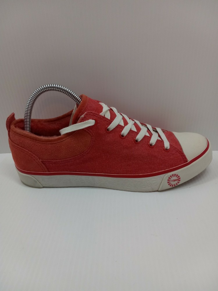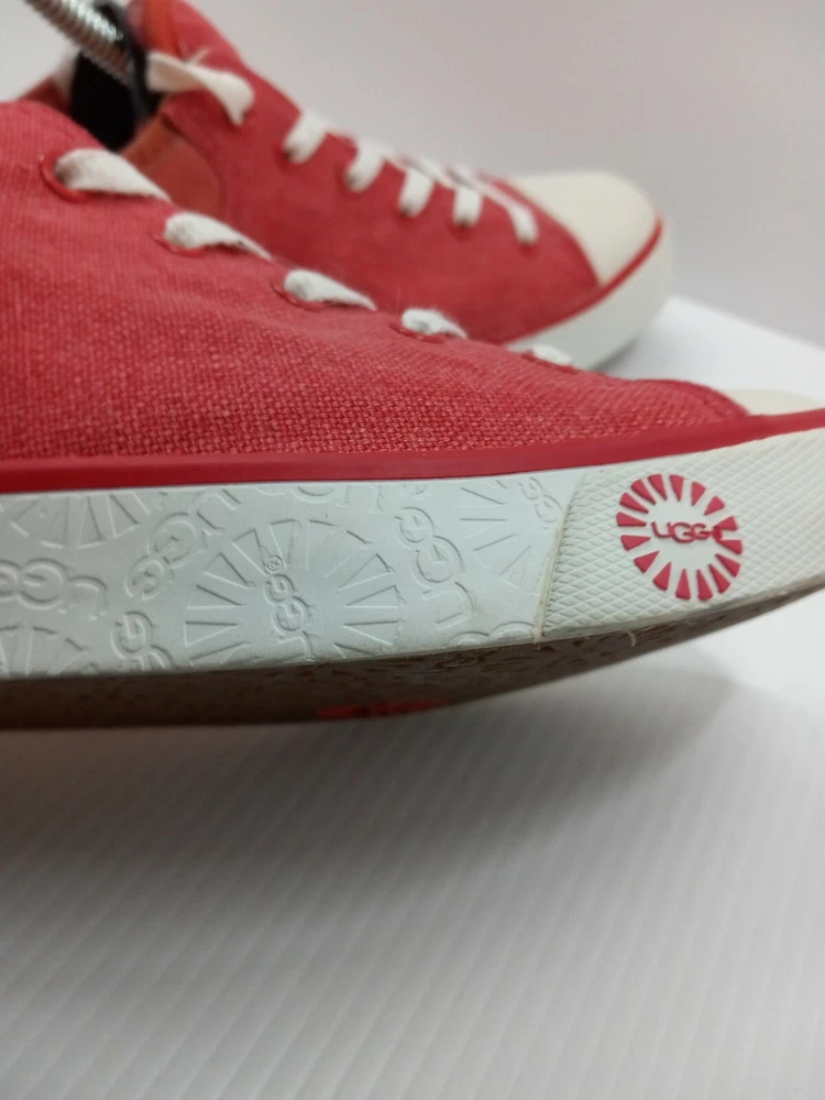 UGG Women's 9 Canvas Leather Fur Lined Coral Color Sneakers 1000452.In Exellent condition No signs of wear.