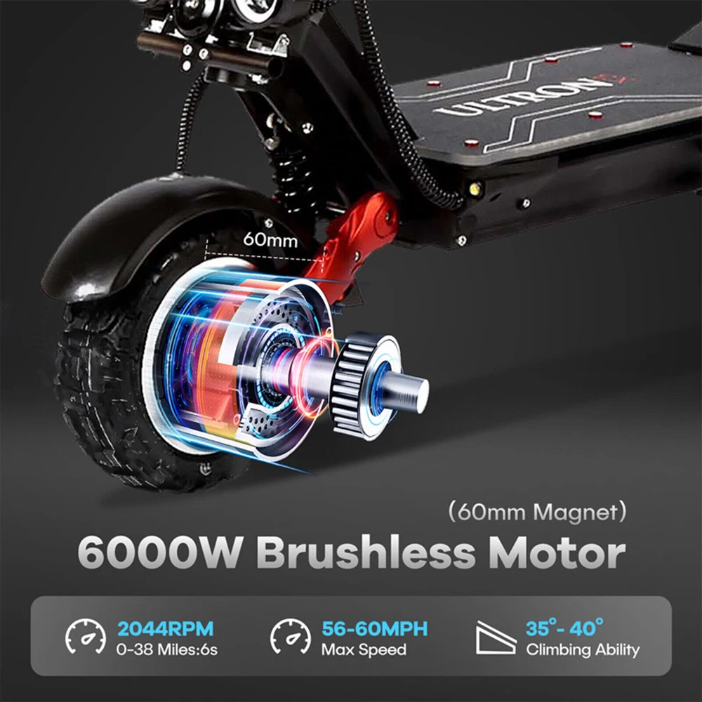 DESCRIPTION: Condition: 100% New Colour: As the picture shown ULTRON X3 Pro Electric Scooters The X3 Pro features an armored vehicle design, making it an extremely high-performance electric scooter. lt is built to tackle any terrain and offers a light show for night time rides. With its high mode, it delivers an exhilarating race-like start. LG-24AH Battery In order to provide longer battery life, ULTRON X3 PRO is equipped with a large capacity LG24AH battery, which can last up to 50-60Miles, providing enough power for long trips. 6000W (3000W*2) Powerful Motor The motor uses a 60mm magnet, allowing the motor to have greater power output. The speed of the motor can reach 2044rpm, 0-38 miles only 6 sceonds, the fastest speed can reach 56MPH or more, and can easily climb the slope of 35-40 degrees. Dual Hydraulic Shock System Using a 125mm hydraulic shock absorbing design can prevent the scooter from excessive beating and achieve stable cycling. The 2000LBS spring can be adjusted according to the weight of the cyclist ,Providing the most comfortable cycling experience for cyclists. Dual Hydraulic Brake System Ultron X3 Pro uses a dual piston hydraulic brake system which is matched with 160mm stainless steel discs. At the same time, the EBS function is used to improve the brake effect, which brings safe protection to the cycling. Tips ULTRON offers a free warranty ranging from 3 to 12 months from the date of purchase for customers who have bought an ULTRON scooter. During the warranty period, damaged parts, including shipping costs, will be provided to the user free of charge. We are dedicated to delivering excellent after-sales service to our customers. Q&A 1: What kind of battery is the scooter and range ? ULTRON X3 PRO uses LG 60V45AH battery (LG-M50LT). the quality is very stable. the maximum range can arrive to 50-62 Miles (80-100km). it depends on the weight of the rider. but also has a relationship with road conditions 2: What is the speed of X3 PRO ? The fastest speed of the X3 PRO depends on the weight of the rider. but also has a relationship with road conditions and power. we have tested that a 155 lbs (70KG) rider can reach a maximum speed of over 59 MPH (95KMH) when the battery is fully charged. 3: Is it stable during high-speed riding ? X3 PRO is a scooter specially designed for high-speed riding. It has very good stability, and there will be no shaking of the handlebar when riding at high speed. 4: Can the X3 PRO use road tires ? X3 PRO comes with off-road tires by default. If you need road tires, we suggest you order tires separately. 5: Is my electric scooter waterproof ? ULTRON recommends all riders to maintain safe riding habits. In order to protect the quality and functionality of your E-Scooter. we strongly recommend that you do not ride your E-Scooter in rainy or snowy weather. 6: How to shipping ? Your order will ship within 48 hours of placing it. (Saturday and Sunday orders ship on Monday). NOTE: 1. Due to the hand measurement, there may have error measurement about 1-5mm. 2.Item color displayed in pictures may be showing slightly different on your computer monitor since monitors are not calibrated same. Your understanding will be highly appreciated. SHIPMENT: 1.Buyer take responsibility in import / tax cost (not included in item price) 2.Pls contact with us to confirm extra cost if you need to upgrade the shipping option 3.If there's any concern about shipping, pls contact with us for further confirmation RETRUN POLICY: -30 DAY MONEY BACK RETURN POLICY: 1. If you are unhappy with your item or changing of mind purchases for whatever reason, pls keep the item and package original. Buyer needs to afford the return postage. Besides, original postage will not return. 2. Please contact us within 30 days if you have a faulty item and we will cover the return postage where necessary, we do not cover this outside 30 days of purchase. -ADDRESS CHANGES: 1. If you enter the incorrect name or shipping details before purchasing, we will arrange shipment for you according to your ebay address. 2. We are not responsible for these changes if there is a mistake entered by the buyer. CONTACT US: 1. Our working time is from Beijing time 9:00am to 18:00pm on working days. 2. We hope to give you a good shopping experience. We will glad to help you solve problems once we receive your letter on working time. 3. If you have any questions or advice about the product you receive, pls contact us and send the pictures about the item firstly, we will check the issue for you ASAP and make you sastified.