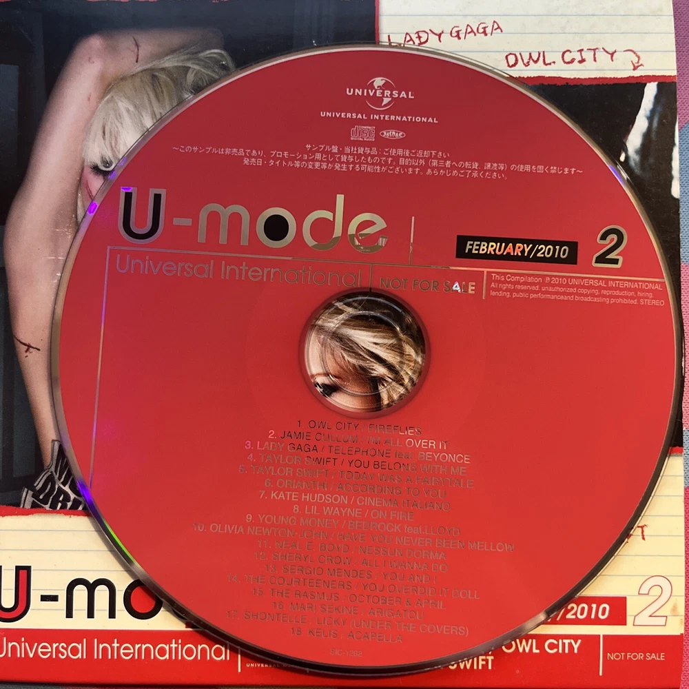 U-MODE FEBRUARY 2010 (CD Japan Featuring Owl City /Taylor Swift / Lady Gaga). Condition is Very Good. Shipped with USPS Media Mail.