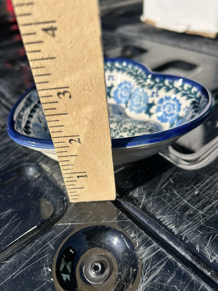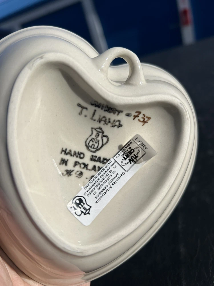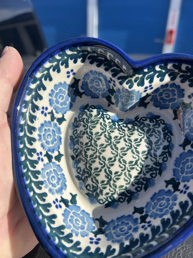 Department:AdultColor:Blue & WhiteFeatures:Loop for hangingNumber of Items in Set:OneShape:HeartItem Height:5.5"Country/Region of Manufacture:PolandType:Decorative BowlVintage:YesProduction Technique:PotteryBrand:UNIKATProduct Line:Unikatgtin13:Does not applyBackstamp:PaintedHandmade:YesFinish:GlossyMaterial:PorcelainSet Includes:Decorative dish or candy, dipsOccasion:All OccasionsUPC:Does not apply