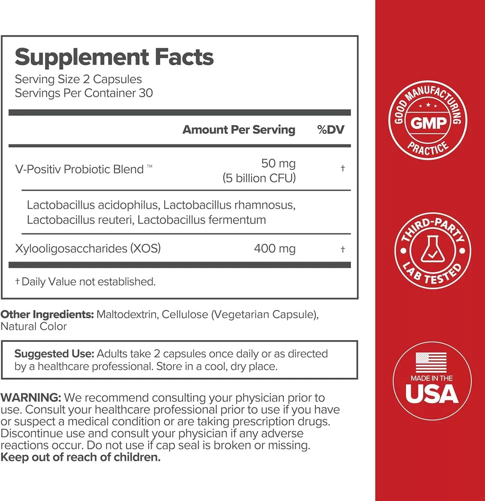 URO Vaginal Probiotics for Women pH Balance with Prebiotics & Lactobacillus Probiotic Blend - Women's Vaginal Health Supplement - Promote Healthy Vaginal Odor & Vaginal Flora, 60 Count (Pack of 1) Promotes Vaginal Health: URO Probiotic for women is formulated with clinically-studied ingredients to support healthy vaginal odor, vaginal pH, yeast balance, vaginal flora, and vaginal care.* The Science Behind URO: URO combines our proprietary V-Positiv Probiotic Blend and XOS Prebiotics. When the vagina’s natural pH becomes too basic, it can lead to more harmful, odor-causing bacteria. The ingredients in URO Vaginal Probiotic helps crowd out harmful bacteria and promote pH balance for women, vaginal health & healthy odor.* A Healthier Vagina In a Week: You may see results within 7 days – full benefits in 2 months. For best results, take 2 URO Vaginal Probiotic capsules daily with water. Our Happiness Commitment: URO Vaginal Probiotic capsules are only made with the good stuff: including the highest quality ingredients that are third party tested, vegan friendly, gluten-free, non-GMO, and cruelty free. If you don’t love these supplements within 30 days, we’ll be happy to help! Who Is O Positiv?: Our proactive, symptom-targeting products make habit-based health easy. It’s not magic, it’s science—across periods & menopause, vaginal & digestive health, O Positiv makes supplement formulas with research-backed ingredients for results you can feel.