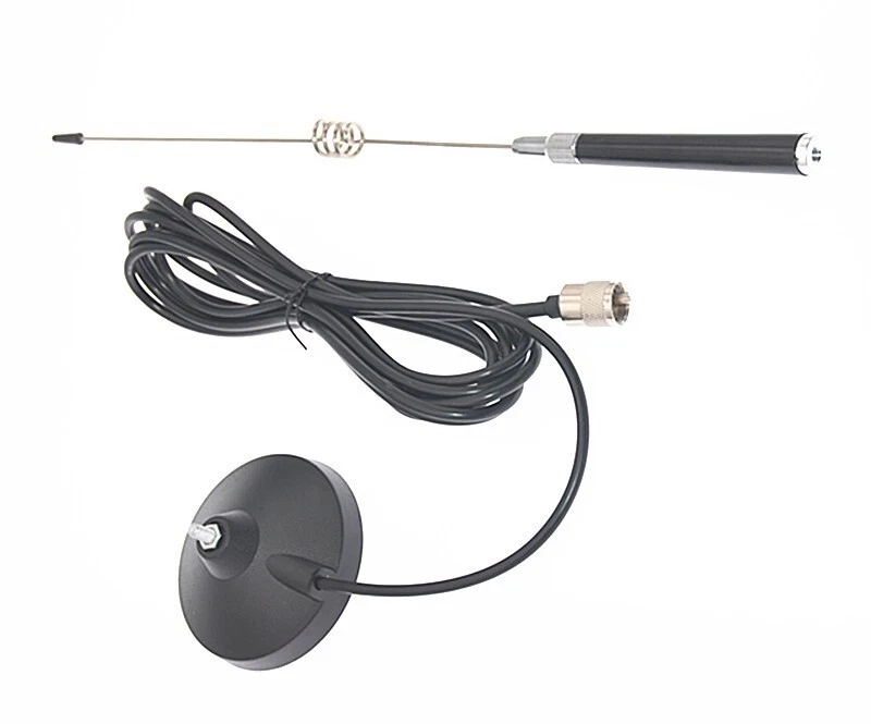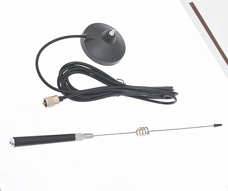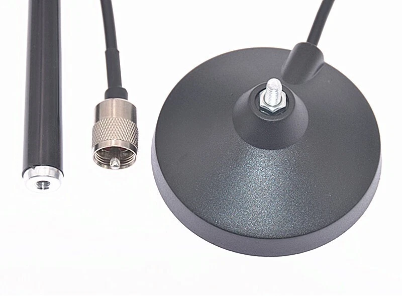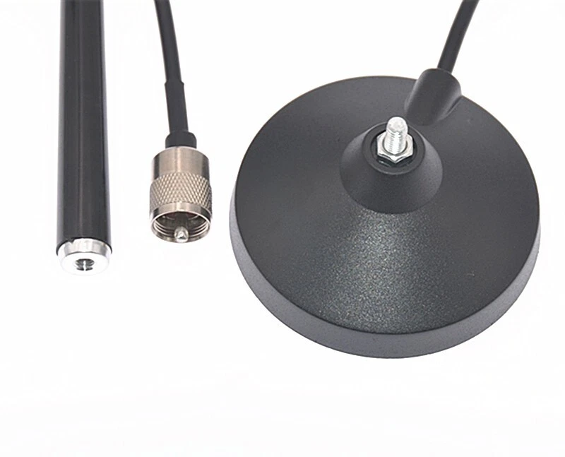 MAG-1345 CB Radio Antenna 27MHz PL Connector Aerial with Magnetic Base 4m RG58U Feeder Cable for Mobile Citizens Band Radio Specification: Frequency range: 26-28MHz Gain: 3dBi Impedance: 50 ohms Withstand power: 30W Antenna length: 42cm/16.53" Suction cup diameter: 9cm/3.54" Feeder cable: RG-58U 4 meters Weight: 400g Feeder cable connector: PL Note: 1. There may be slight size deviations due to manual measurement, different measuring methods and tools. 2. The picture may not reflect the actual color of the item because of different photographing light, angle and display monitor. On May 5, 2024 at 20:21:06 PDT, seller added the following information: