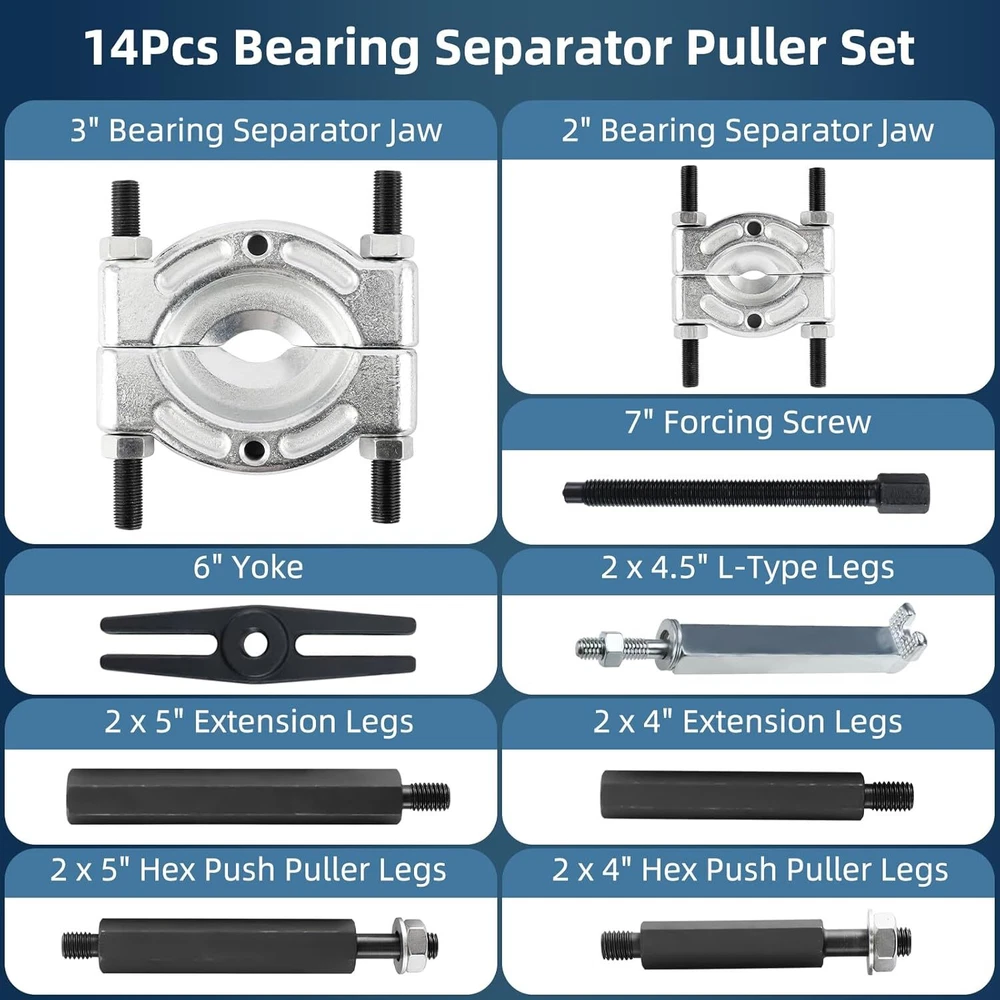 US 8MILELAKE 14PCS Bearing Separator Puller Set Heavy Duty 5 Tons Capacity 2inch