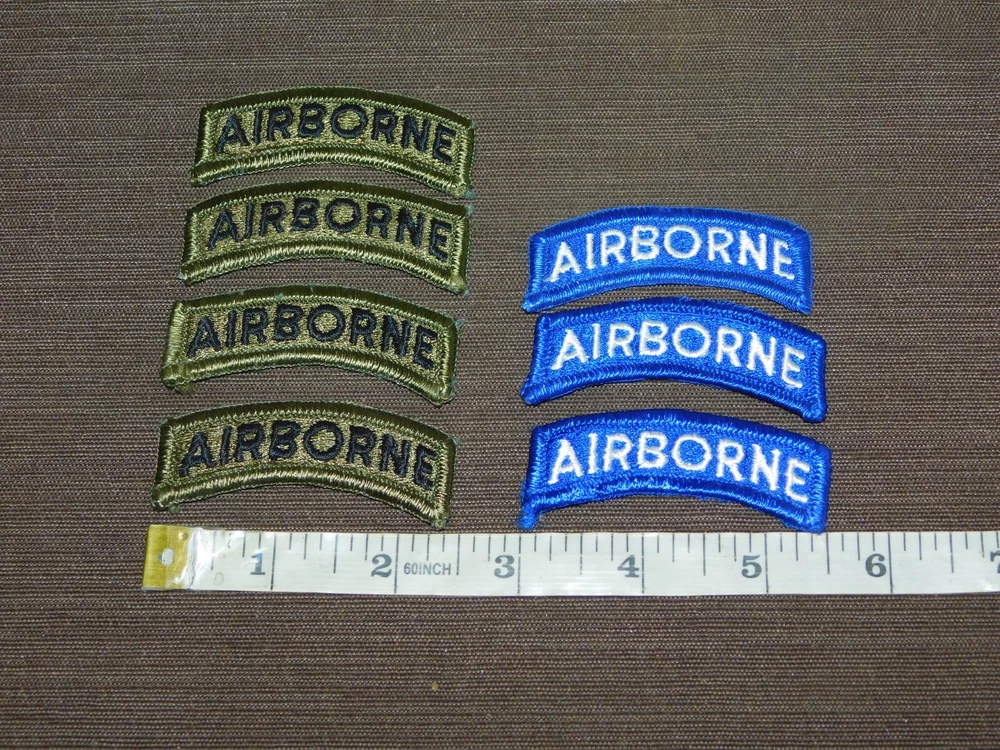 YOU ARE BIDDING ON..... US ARMY AIRBORNE 7 PATCHES NEW CONDITION .. UNUSED .......PLEASE LOOK CLOSELY... PLEASE VIEW PHOTOS FOR CONDITION...***PLEASE E-MAIL IF YOU HAVE A QUESTION OR WANT AN ADDITIONAL PICTURE....PLEASE VISIT MY EBAY STORE FOR ADDITIONA VINTAGE ITEMS..THANK YOU***1WBX5678-PTCH3333