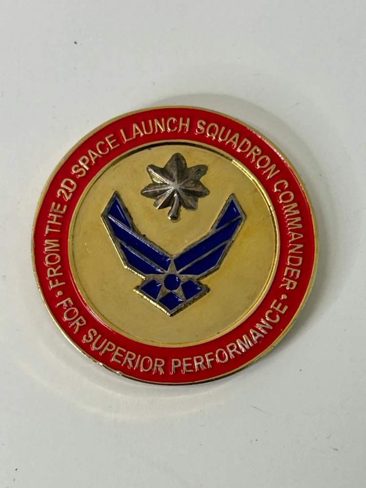 US Air Force 2nd Space Launch Squadron Challenge Coin. It measures 1.75 inches and in great condition. (SD5)