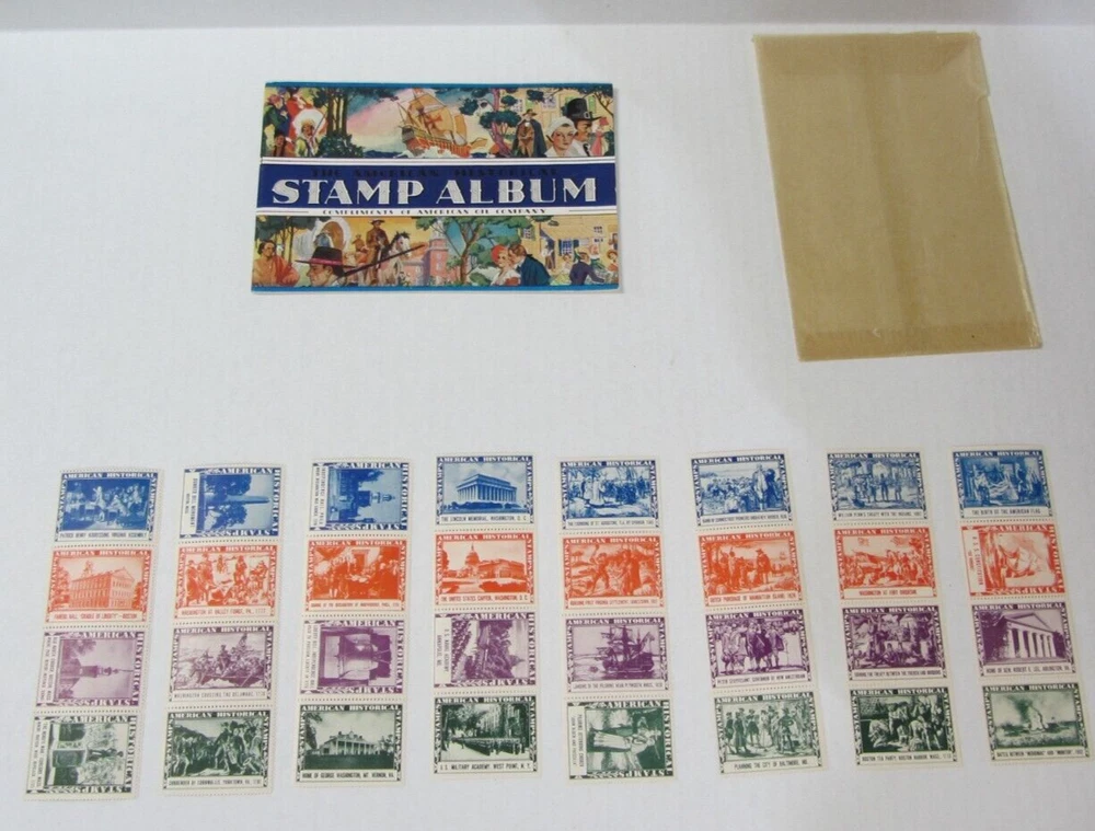 HomeUS American Oil Company 1937 Stamp Album Superb condition includes 32 stamps
