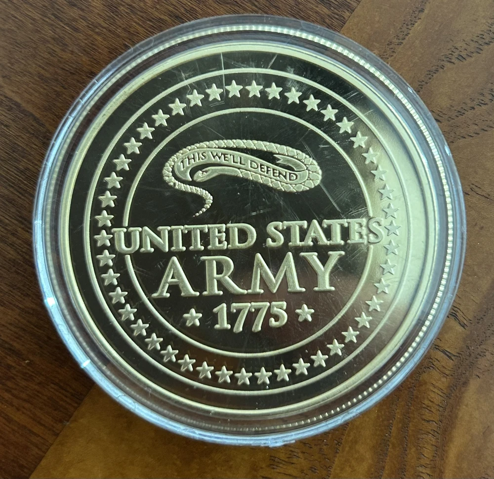 The US Army Battle of Baghdad Commemorative Coin is an original item featuring a design that commemorates the historic battle of Baghdad. As a piece of militaria, this challenge coin serves as a tangible symbol of honor and pride for those who served during that significant military operation. With its originality and theme focused on militaria, this coin is a valuable collectible for enthusiasts of military history and memorabilia.