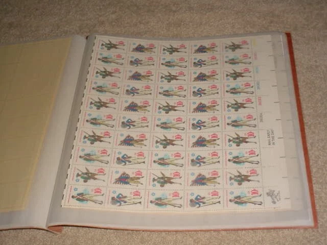 U.S. FULL SHEETS OF STAMPS , 20 MNH SHEETS 1970`s - 1980 IN SOFT COVER ALBUM. SHEETS - #1345-54 + 1480-83 + 1456-59 + 1464-67 + 1530-37 + 1538-41 + 1547 + 1569-70 + 1565-68 + 1564 + 1527 + 1503 + 1506 + 1489-98 + 1487. TOTAL FACE VALUE $71.68. ALBUM AND SHEETS IN GREAT CONDITION. CATALOG VALUES TO BE DETERMINED.