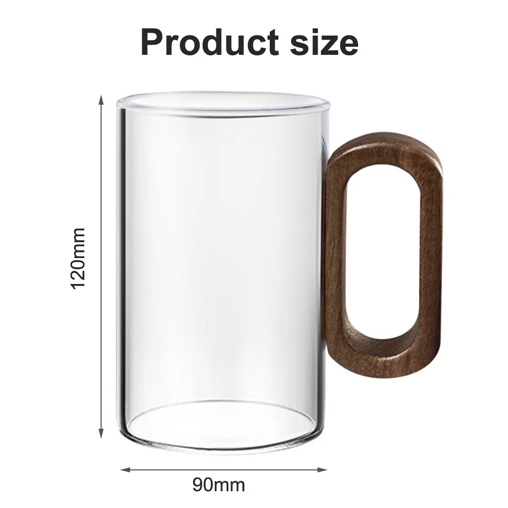 Features: 1. High borosilicate glass material: This glass cup is made of high borosilicate glass, which is known for its excellent heat resistance and impact resistance. It is not only safe and durable, but also highly transparent, crystal clear, allowing you to enjoy the drink while also appreciating its pure color. 2. Creative styling design: The cup cleverly combines walnut wood with high borosilicate glass to create a modern and retro aesthetic. This unique design not only enhances the beauty of the cup, but also makes it a fashionable decoration on your desktop. 3. Humanized leak proof design: Considering the convenience in daily life, this glass cup specially adopts a humanized design to ensure that there will be no leakage during use. Don't worry about the beverage spilling out. 4. High temperature resistance performance: The high temperature resistance of high borosilicate glass allows this glass cup to withstand high temperature environments, making it suitable for holding hot or cold drinks without worrying about cracking or deformation due to temperature changes, making use more reassuring. 5. Fashionable lifestyle atmosphere: This glass cup adds a touch of elegance to your daily life with its fashionable design and exquisite craftsmanship. It is not only a practical drinking utensil, but also a symbol of your taste in life. Whether used at home or in the office, it can demonstrate your pursuit of quality of life. Specifications: Size: 11.5 * 8 * 8cm Capacity: 350ml Function: High temperature resistance Style: Modern and minimalist Product List: 1 x glass cup On Dec 12, 2024 at 02:24:41 PST, seller added the following information: