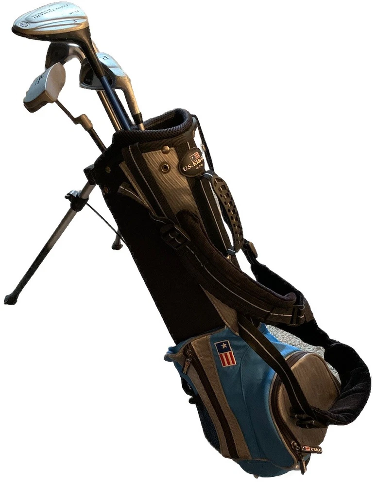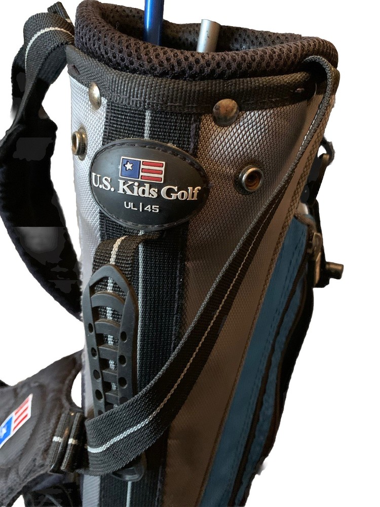 US Kids Gold 5 Piece Set Model: UL- 45 Features & Accents: Bag is Red, Blue White & Black, 3 Sections, 4 Zip Pockets, Carry Strap & Shoulder Strap, Bag has Balls and Tee's. Clubs- 6 Clubs, 4 Irons, 1 Driver, & 1 Putter. Condition. Bag in Very good condition. Clubs in Good Used Condition. Smoke Free Home. Same day shipping if purchased by 3:00 PM, EST. International Sales Ship through Ebay International Shipping Program. Free Returns. We truly try to disclose all information on items we list. However if we miss something, please contact us before leaving negative feedback and allow us to resolve the problem or issue a returns. Your choice. Thank you.