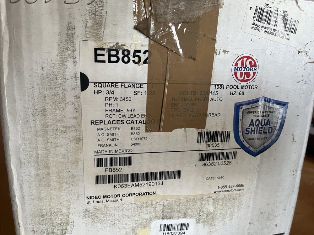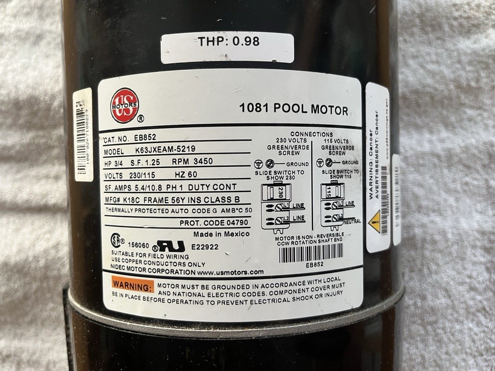 This is a US Motors brand 1081 Pool Motor / Pump, model K63JXEAM-5219. We never used it but, despite the box damage, we believe it works well! All information about motor included in photos.