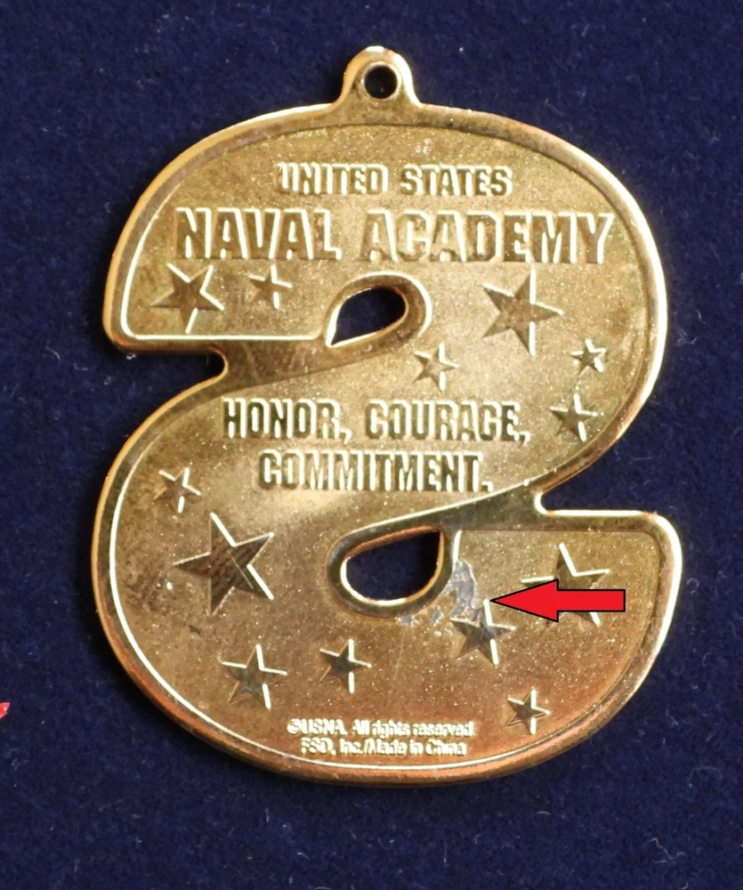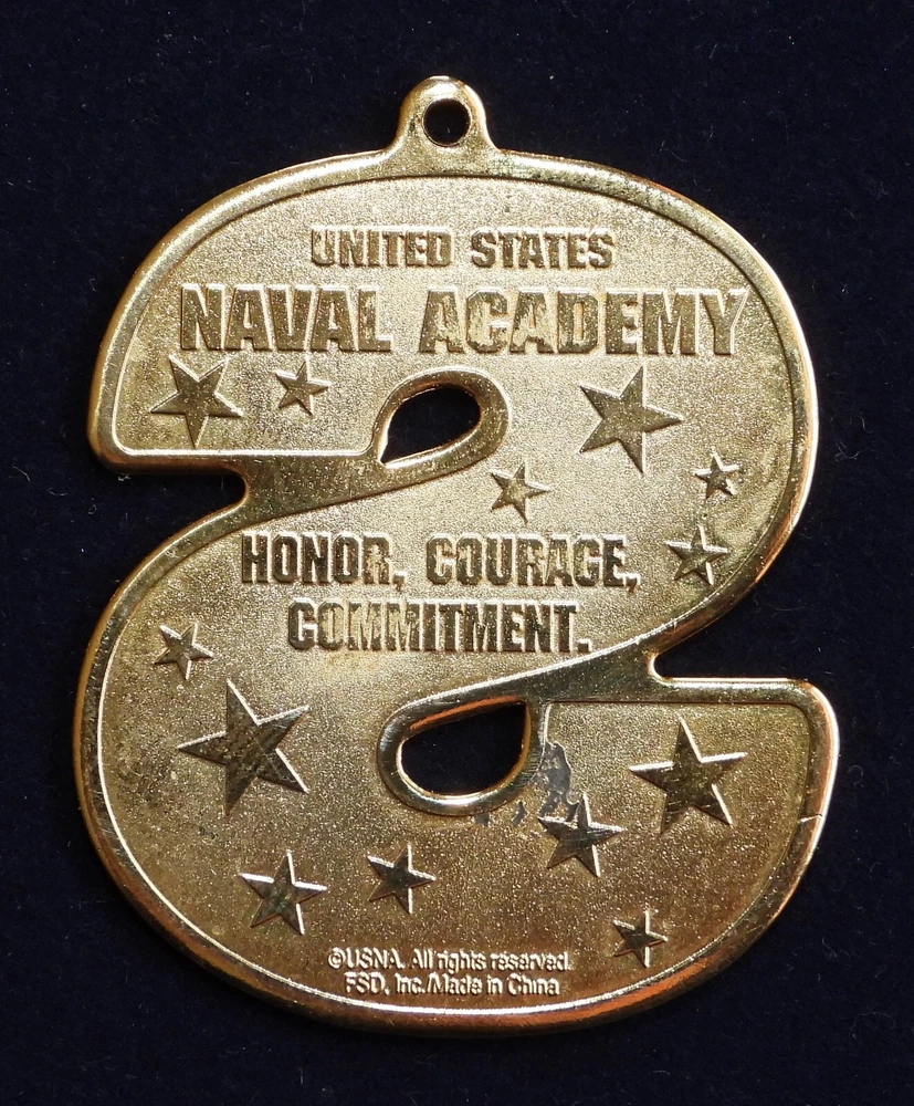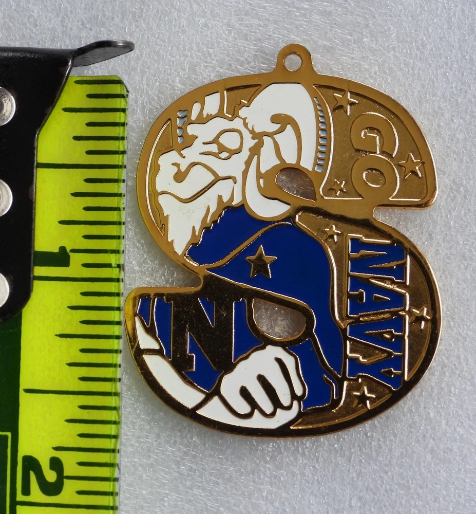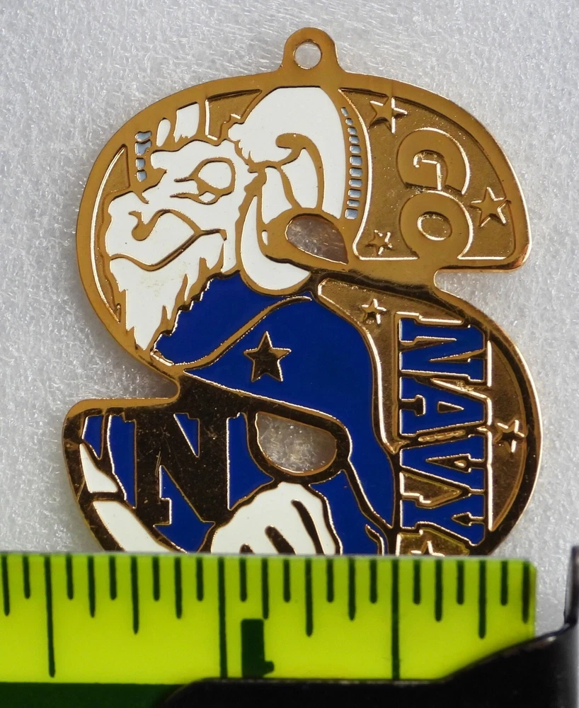 This is a "Go Navy" U.S. Naval Academy souvenir pendant / token. The Pendant pictured is the one you will recieve. The Pendant is in Very Good condition but does have a scuff mark on the back side, which is shown in close up in the last picture. The Pendant is about 1 5/8" long by 1 3/8" wide by 1/16" thick. The Pendant weighs about 1/2 OZ. x