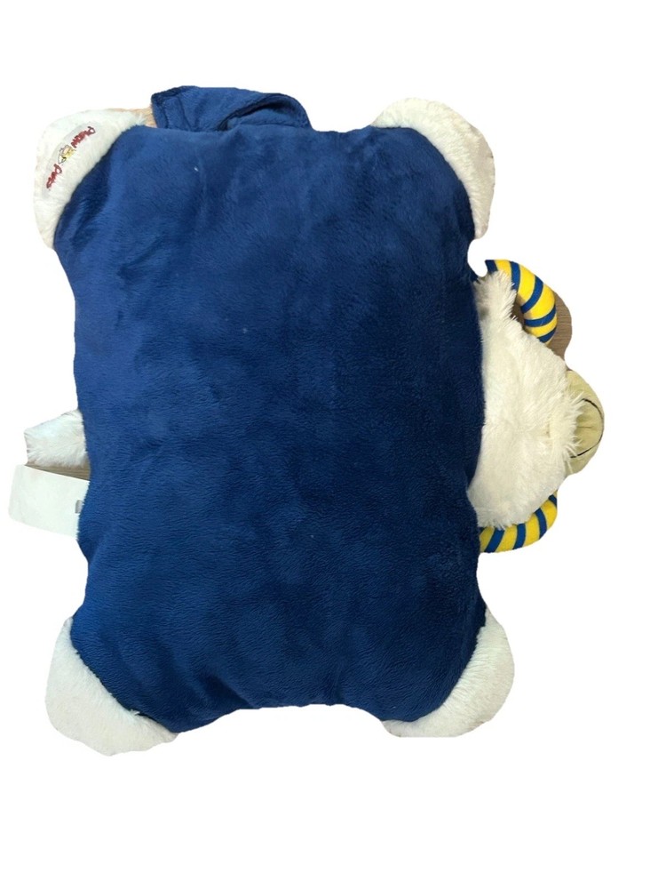 US Navy Midshipmen Pillow Pet Officially Licensed Product IT'S A PILLOW, IT'S A PET....IT'S A PILLOW PET! A super-soft chenille plush folding stuffed animal. So cuddly youll never want to put it down! Starts out as your pal, then un-velcro its belly, and it quickly becomes your pillow. * Super Soft and Cozy-Measures 18"x13"x5" when opened * Quality embroidery * Hook & loop fastener to stand upright