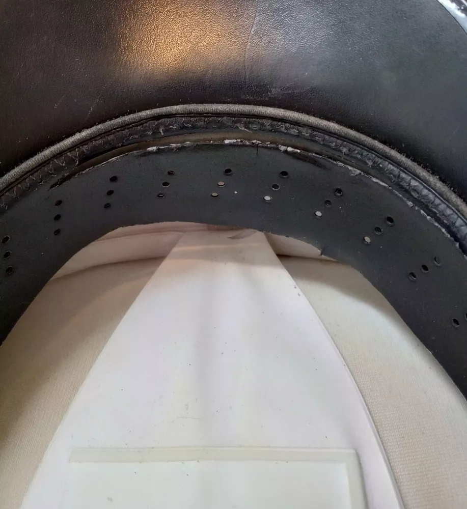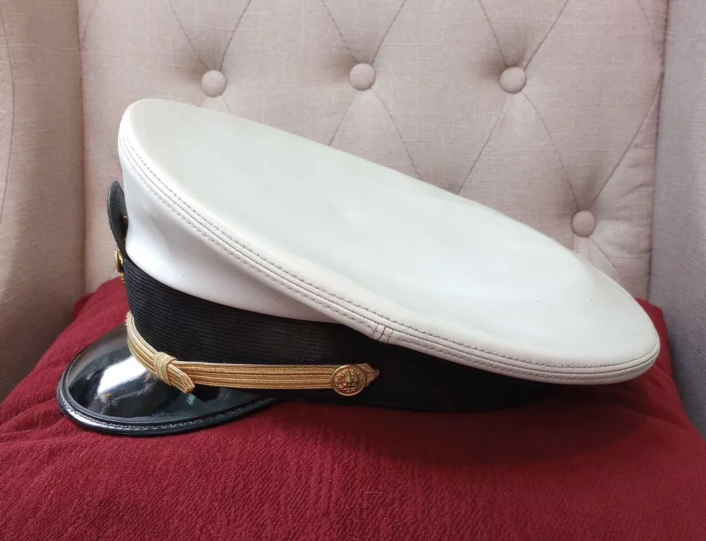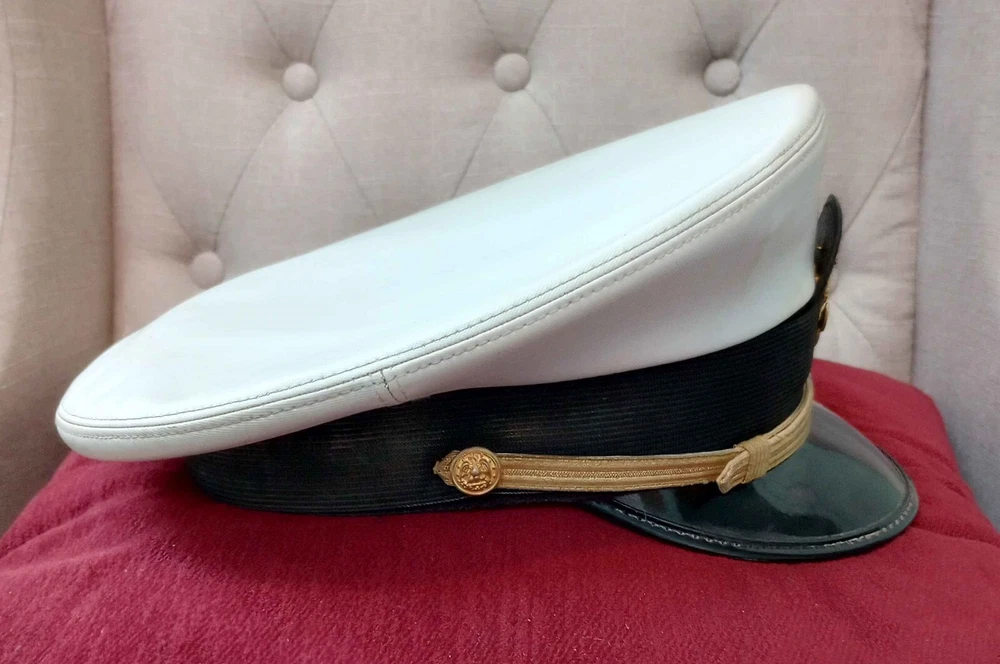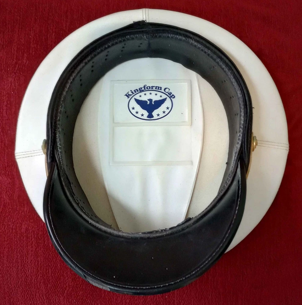 Measurements: 7-3/8 (23-1/8" / 59cm) Large Good condition. Separation between sweatband and visor. Includes chin strap, device and buttons. No size stamp nor manufacturers date. Manufactured by Kingform Cap Co , USA. Likely 1990's.