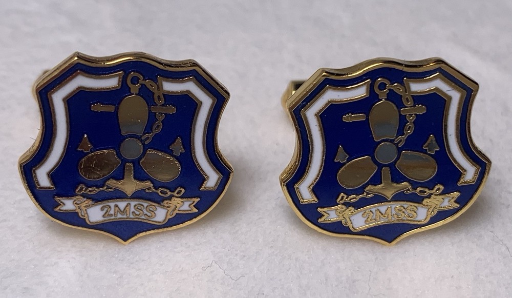 The product is a set of 2MSS US Navy cuff links and a tie bar clip, designed as military-themed collectibles. The 2MSS stands for Machinist’s Mate Submarines, Second Class. The cuff links and tie bar clip are crafted as medals, representing the United States Navy. These accessories are perfect for individuals who have served in the Navy or have a deep appreciation for naval militaria. These are a symbol of pride and honor for those connected to the United States Navy. Used Please see pictures details