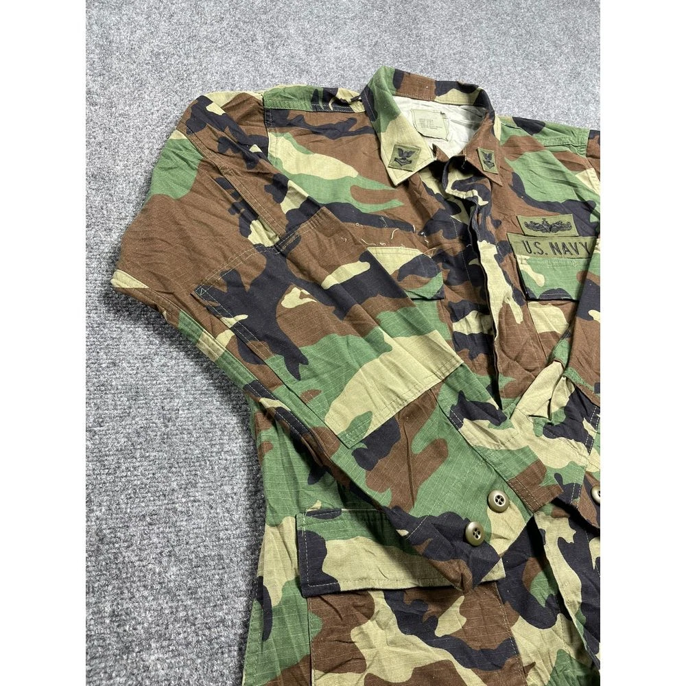 US Navy Men's Green Camouflage Working Uniform Jacket Size M Product Detail • Brand: Unbranded • Type: Jacket • Color: Green • Condition: This US Navy men's green camouflage working uniform jacket in size M is in good pre-owned condition. Some light wear is present, but no significant stains, tears, or damage. Clean and intact. PLEASE NOTE: Please review the pictures before making a purchase. We value your business and encourage you to send a message if you have any issues or concerns I answer most questions instantly! Thank you!