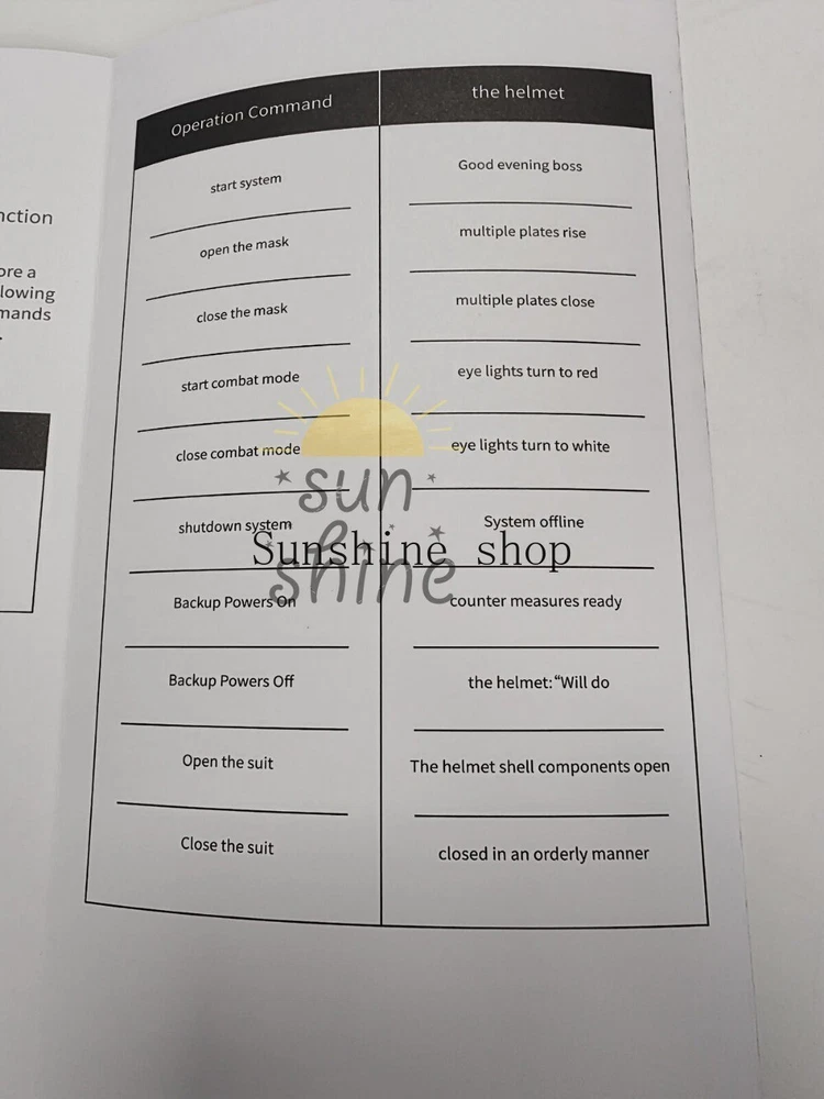 Product Details Product Name: MARK50 1/1 Wearable Collectible Helmet Product Type: Finished Product Scale: 1/1 Material: ABS Wearable head circumference: within 60cm Function description: 1. Support three ways to control the helmet. 【①touch sensing】;【②remote control】;【③Chinese and English voice control】 2. With voice command dialogue control function, you can use specific keywords to have a simple voice dialogue with the helmet 3. There are two opening and closing methods [normal opening and closing] & [split opening and closing] 4. On the basis of film and television, according to the original settings, 4 original light-emitting sites have been added, [Armor Auxiliary Power Supply]. 5. The electroplating drawing process is used to fully restore the details of the helmet collection film and television props