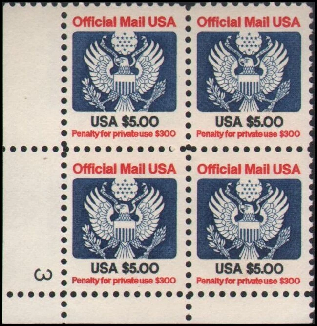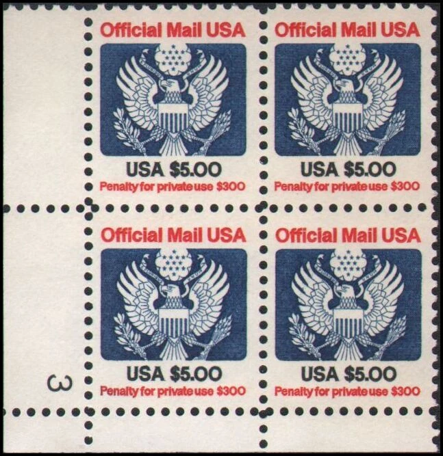 Worldwide Philatelics Country: United States Catalog #: O133 Condition: Mint, Never Hinged plate block Lot #1 Lot #19866 Lot #19867 • Price is for quantity 1 of the items shown above, not all of them. Specify lot number at checkout, otherwise, Lot #1 will be shipped. • We combine shipping. This item ships free with any other purchase. • Buy from us with confidence. 30 day money back guarantee if you are not 100% satisfied. • Any faults such as thins, tears or pinholes that are not obvious from the picture are described above. Mint stamps have original gum unless otherwise stated. • Find us on the web for a wide selection of other affordable stamps, covers and postcards. • Thanks for looking! xDJx #126931 Worldwide Philatelics