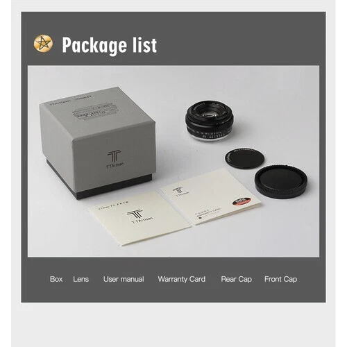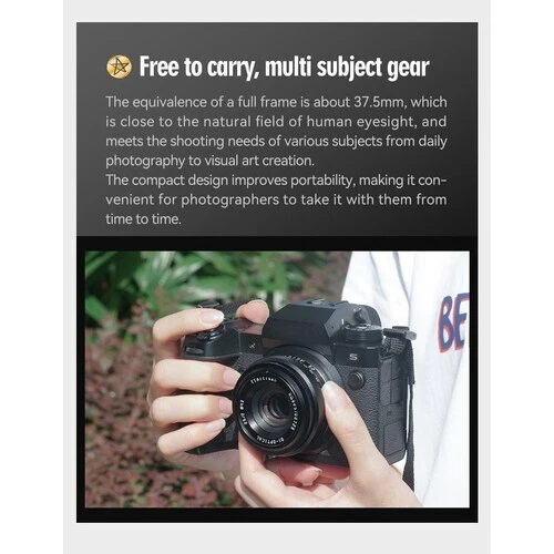 Home Payment Shipping Return Policy About Us Contact Us Feedback Store Categories Other 🌟US Local Shipment Camera Flash System Studio Flash System Portable / Outdoor Flash Camera Accessories Other Flash Strobe Lighting Flash Strobe Light Kits High Speed Flash Strobe Head Flash Strobe Head (Monolight) Portable (Outdoor) Flash Ring Flash Light AC Slave Flash Flash Strobe Tubes Modeling Light Flash Strobe Trigger Continuous Lighting Continuous Lighting Kits Continuous Light Heads Continuous Light Bulbs Continuous Quartz Lighting LED Video Lights Macro Ring Lights Powerful Outdoor Flashes Godox Witstro Flash Godox Witstro Flash Accessory Speedlite & Accessories Speedlites Practical Kit Speedlite External Battery Power Pack Speedlite Trigger Speedlite Holder / Bracket Speedlite Other Accessories Sync Cables Others Light Control & Modifier Barndoor Beauty Dish Conical Snoot Diffuser Sock Diffuser / Color Filter Light Tent Softbox Reflectors Studio Accessories Background Support Carry Bags / Cases Light Bulbs Light Stand Power Inverter Speedring / Speedring Adapter Shooting Table Studio Clamps Camera Accessories Battery Grips & Batteries Cases, Bags & Covers Hotshoe Converter LCD Hoods Off-Camera LCD Monitor Microphones Remote & Shutter Release Straps & Hand Grips Viewfinders & Eyecups Others Tripod and Support Tool Ball Head Tripod & Monopod Follow Focus Stabilizers Movie Camera Accessories Lens & Filters Lens Filters Lens Cap Lens Hood Lens Adapter Mount Macro Extension Tube Others Home & Crafts Feelworld Video Monitor Zoom Lens Nikon Canon Sony Fujifilm Prime Lens Nikon Canon Sony Fujifilm Olympus Panasonic Microphone Item Description TTArtisan 25mm f/2 Overview Compact and inconspicuous, this 25mm f/2 from TTArtisan is a low-profile all-manual lens well-suited for portraiture, street scenes, and everyday shooting requiring a natural field of view. The lens allows you to work with subjects as close as 9.8" away, and its bright f/2 maximum aperture offers greater control over depth of field for isolating subjects with selective focus techniques. Additionally, a seven-blade diaphragm produces a pleasing bokeh quality. Compact prime is designed for APS-C-format mirrorless cameras and provides a 37.5mm equivalent focal length. Bright f/2 maximum aperture benefits working in difficult lighting conditions and offers improved control over depth of field for selective focus applications. Manual focus design permits working with subjects as close as 9.8" away. 7-blade diaphragm contributes to a smooth and pleasing bokeh quality. Compact and lightweight design Specifications: Type:25mm F2 Optical Design: 7 elements in 5 groups Focal length: f=50mm Filter Size: 43mm Framen: APS-C Angle of view: 61°(APS-C) Max. aperture: F2 Min. aperture: F16 Closest focusing distance: 0.25m Number of of Diaphragm blades: 7 Lens Mount: Fuji X Mount Weight: Approx. 166-189g Focus method: Manual TTartisan 25mm F2.0 APS-C Lens Applicable models: (All for Mirrorless Cameras Not for SLR Cameras) Sony E APS-C Frame: A5000、A5100、A6000、A6100、A6300、A6400、A6500、A6600、NEX-3、NEX-3N、NEX-3R、NEX-5T、NEX-5R、NEX-5、NEX-5N、NEX-7、NEX5C Full Frame(APS-C mode):A7、A7I(A7M2)、A7II(A7M3)、A7R、A7RII (A7RM2)、A7RIII(A7RM3)、A7RIV(A7RM4)、A7S、A7SII(A7SM2)、A7SIII(A7SM3)、A9、A7C Canon EOS-M M1、M2、M3、M5、M6、M6II、M10、M100、M50、M50ll、M200 Canon RF APS-C Frame:R7、R10 Full Frame (APS-C mode):EOSR、RP、R5、R6 FUJI FUJIFILM X X-A1、X-A10、X-A2、X-A2、X-A3X-A5、X-A7、X-M1、X-M2、X-H1、X-T1、X-T10、X-T2、X-T20、X-T3、X-T4、X-T100、X-T200、X-T30、X-PR01、X-PR02、X-PR03、X-E1、X-E2、X-E2S、X-E3、XS10、X-H1、X-H2S、XS10X-H1、X-H2S Nikon Z APS-C Frame:Z50、ZFC、Z30 Full Frame (APS-C mode):Z5、Z6、Z7、Z6ll、Z7II、Z9 Sigma L :FP、FPL (APS-C mode) Leica L: T、TL、TL2、CL Panasonic L :S1/S1M/S1R/S1RM/S1H/S1K/S5/S5K/S5C (APS-C mode) Panasonic M43 G1、G2、G3、G5、G6、G7、G85、GF1、GF2、GF3、GF5、GF6、GF7、GF8、GF9、GX1、GX7、GX8、GX9、GM1、GM5、GM10、GH1、GH2、GH3、GH4、GH5 OLYMPUS M43 EPM1、EPM2、EPL1、EPL2、EPL3、EPL5、EPL6、EPL7、EPL8、EPL9、E-P1、E-P2、E-P3、E-P5、E-P6、E-M1、E-M5、E-M10、E-M10II、E-M10III、PEN-F Large aperture increase creative fun The maximum aperture can reach F2, which greatly enhances the degree of creative freedom - whether it is shooting in low-light environments or pursuing beautiful bokeh, the large aperture of F2 can meet your creative needs. Free to carry, multi subject gear The equivalence of a full frame is about 37.5mm, which is close to the natural field of human eyesight, and meets the shooting needs of various subjects from daily photography to visual art creation. The compact design improves portability, making it convenient for photographers to take it with them from time to time. Excellent close-up function The closest focusing distance is only 0.25 meters. Shooting scenes such as food, flowers, and small objects can show the details and beauty of these objects at a closer distance. Featured Items