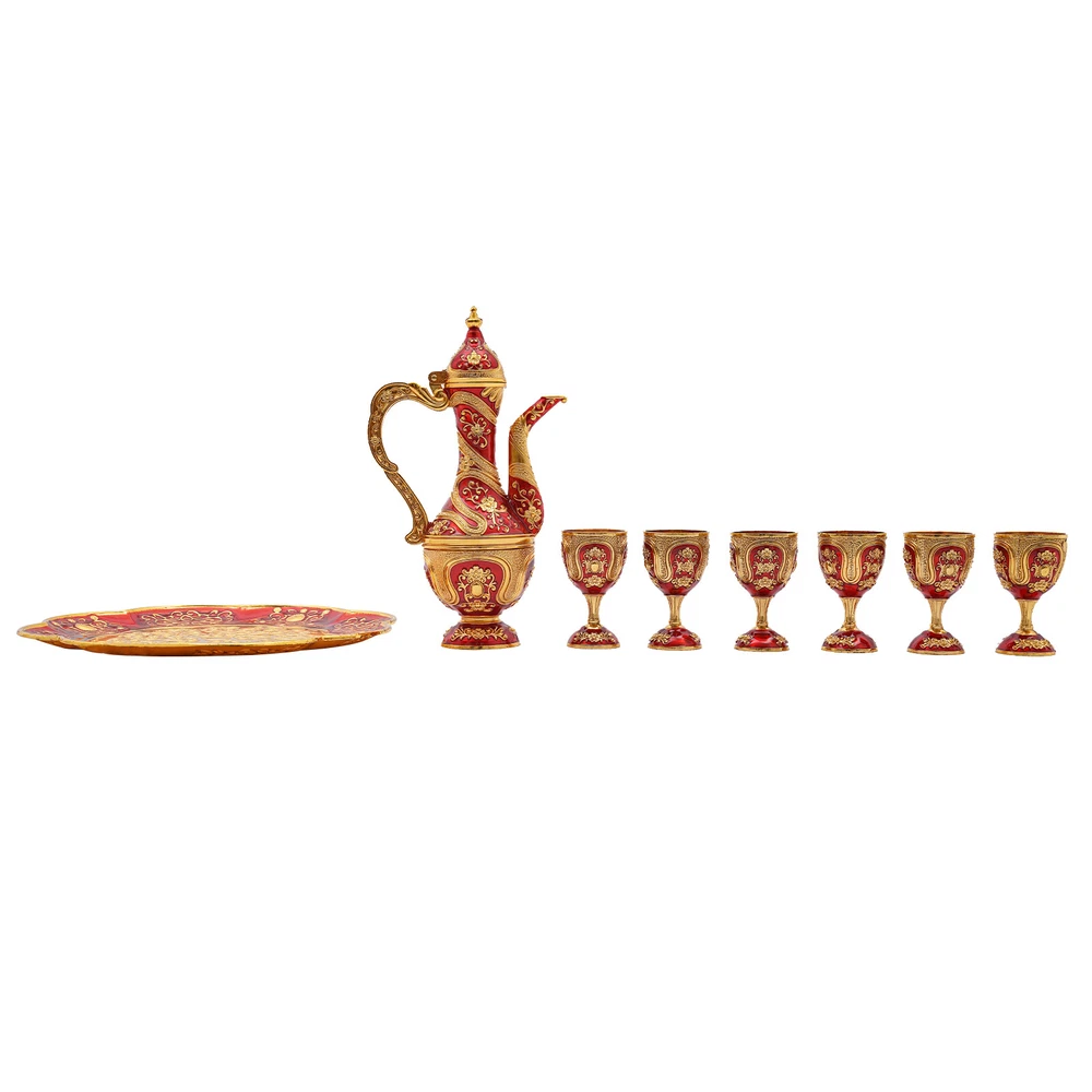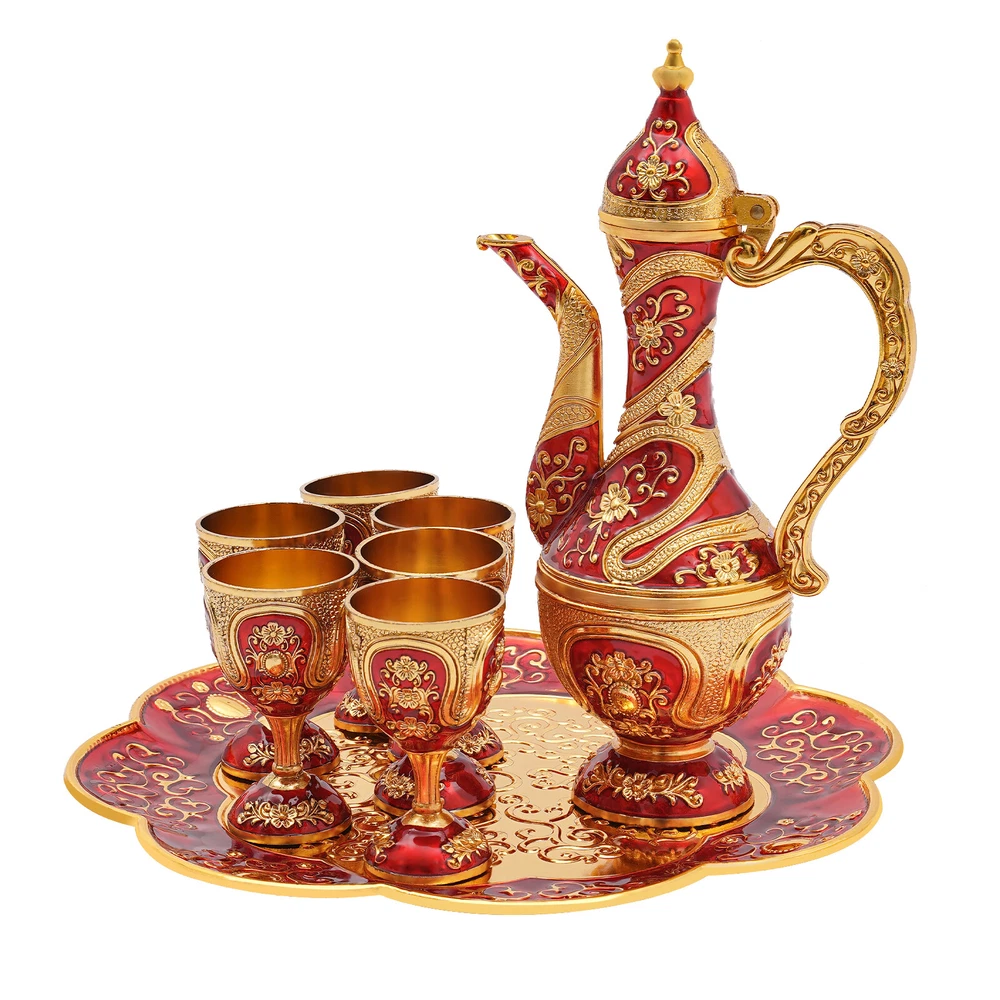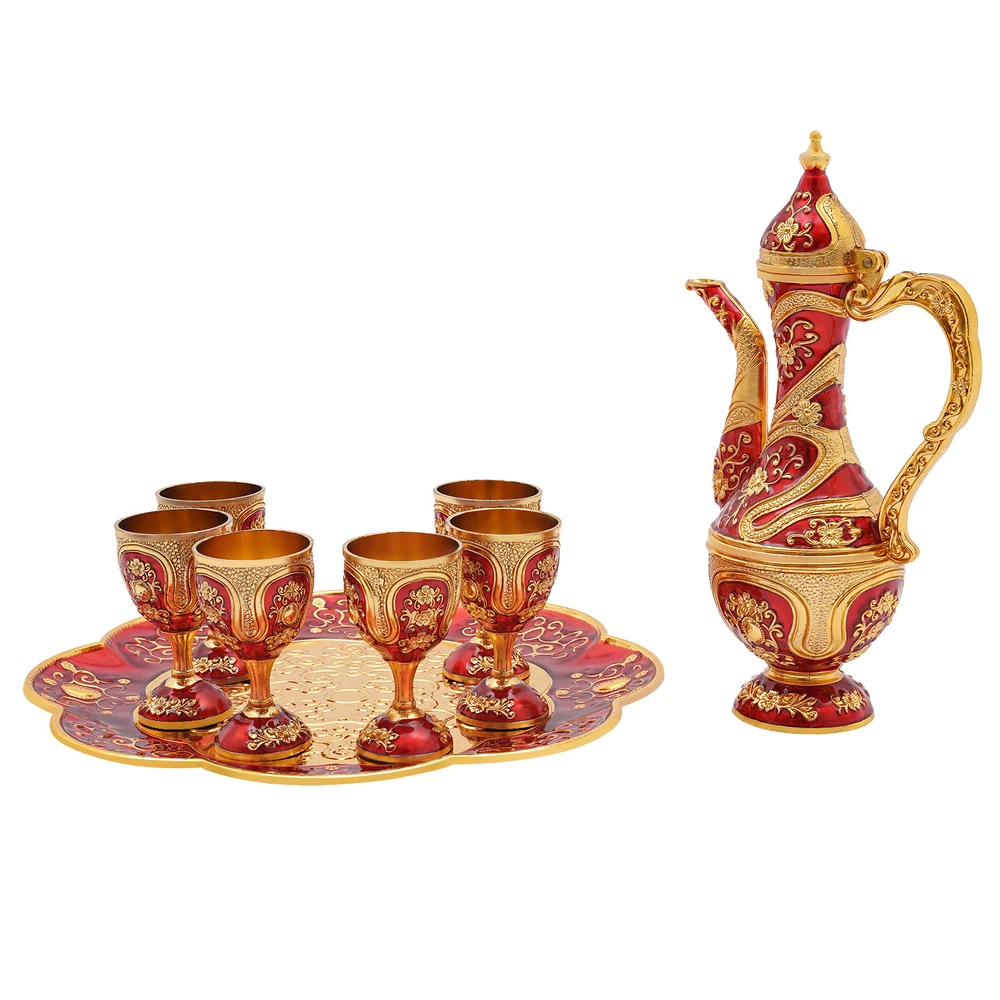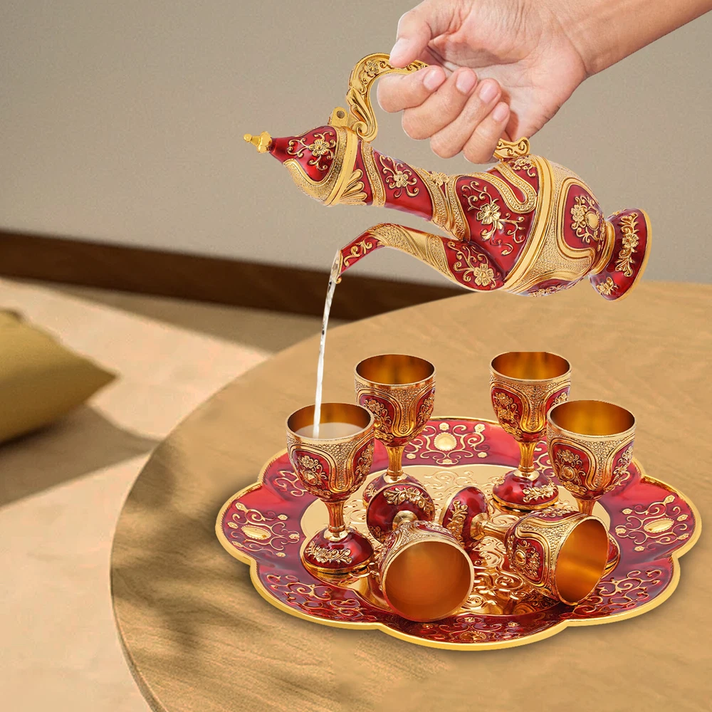 Specification Material: Zinc Alloy Color: Red Process: Electroplating Style: Vintage Mount Type: Tabletop Assembly Required: No Tea Tray Diameter: 24.5cm/9.6 inch Teapot Size(W*H): 21.8*13cm/8.58*5.12in Each Cup Size(W*H): 7.5*4.4cm/2.95*1.73in Each Cup Capacity: 15ml/0.51oz Teapot Capacity: 220ml/7.4oz Package Size: 26*26*10.5cm/10.2*10.2*4.1 inch Net Weight: 1kg/2.2 lb Gross Weight: 1.2kg/2.6 lb Package Included 1* Teapot 6* Cups 1* Tea Tray US Vintage Teapot Set Zinc Alloy Tea Coffee Wine Serving w/ Tray+ Teapot +6 Cups Description Do you want to add some color to your monotonous tea table? Take a look at our teapot set. It includes a teapot, six cups, and a tray, which can meet all your needs for just one serving. Its vintage appearance makes it an excellent decoration and collection in your room. Buy it quickly, and then enjoy delicious tea or coffee with your family or friends! Key Features Sturdy and Durable: It is made of premium zinc alloy with an electroplating process, making it resistant to corrosion and rust, and providing a long service life. Multifunctional: It can be used as a hip flask, a wine dispenser, a kettle, and a decanter, and you can share coffee, tea, cocktails, cappuccino, or other beverages with your friends or guests. Vintage Appearance: It features exquisite relief patterns and combines red and gold , giving you an unusual visual enjoyment and greatly decorating your wine cabinet, tea table, coffee table, bar, wedding, and party. Reasonable Capacity: The teapot holds 7.4oz of liquid and each cup holds 0.51oz of liquid, which can meet the drinking needs of multiple people without causing waste Details Convenient Lid and Handle: The ergonomically designed curved handle is easy to grip. The lid of the teapot is connected to the handle, allowing you to easily open and close the lid with one hand. Practical Tray: It has a maximum diameter of 9.6 inches, much larger than similar products on the market, allowing it to hold more items. It can not only place teapots and teacups but also can place fruits and other items separately, with high practicability. Application It is suitable for serving tea, coffee, wine, cappuccino, milk tea, whiskey, brandy, and mixed cocktails, for self-collection, or as a gift for your family, relatives, friends, and colleagues. It can be placed in any indoor location to add decoration, such as the living room, dining room, bedroom, or coffee shop. Specification Material: Zinc Alloy Color: Red Process: Electroplating Style: Vintage Mount Type: Tabletop Assembly Required: No Tea Tray Diameter: 24.5cm/9.6 inch Teapot Size(W*H): 21.8*13cm/8.58*5.12in Each Cup Size(W*H): 7.5*4.4cm/2.95*1.73in Each Cup Capacity: 15ml/0.51oz Teapot Capacity: 220ml/7.4oz Package Size: 26*26*10.5cm/10.2*10.2*4.1 inch Net Weight: 1kg/2.2 lb Gross Weight: 1.2kg/2.6 lb Package Included 1* Teapot 6* Cups 1* Tea Tray Note Please keep this teapot set dry after use. Please confirm that it meets your needs before ordering. Upon receiving the product, you need to thoroughly clean the inside of the teapot and teacup before use. Please allow the slight color difference caused by the shooting light and 1-3cm error due to manual measurement, and make sure you do not mind before you order. Payment Delivery details Terms of sales About us Contact us Payment We accept ebay payment 。 Fees such as import duties, taxes are not included in the item price or shipping costs. These charges are the buyer's responsibility. Delivery details Shipping: 2-9 working days to: USA Terms of sales We maintain high standards of excellence and strive for hundred percent customer satisfaction. Feedback is very important to us. We hope that you contact us immediately before you give neutral or negative feedback, so that we can address your concerns. It is impossible to address issues if we do not know about them! About us Your satis faction is our ultimate goal. We work hard to earn your trust and future business. Our certified technicians have tested each item before shipping. The unit comes with 1 year limited warranty on all manufacturing defects. a) If you receive a defective item, you may return it or ask for a discount. Please contact us within 14 days after you receive the package. b) What you returned must be intact and in its original packaging as re? u. Customer is responsible for shipping costs of the returned item. c) We will cover the cost of shipping back t with the shipping rate indicated in the registration page. We will send you a new unit or refund the full payment you paid. Thank you. Contact us Business Hour Business Hour: Monday To Friday: 8:30 AM to 5:00 PM (Beijing China time) Due to time zones, our reply to your questions may not be immediately. But within above working time, we will reply your email within 24 hours. If it's non-workdays, please kindly be patient and wait till Monday. Please contact us with ebay message. Please feel free to contact us if you have any questions. Monday To Friday: 8:30 AM to 5:00 PM (Beijing China time) Due to time zones, our reply to your questions may not be immediately. But within above working time, we will reply your email within 24 hours. If it's non-workdays, please kindly be patient and wait till Monday. Please contact us with ebay message. Please feel free to contact us if you have any questions. On Dec 18, 2024 at 20:18:54 PST, seller added the following information:
