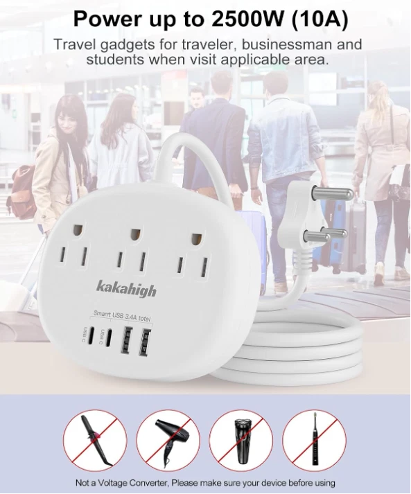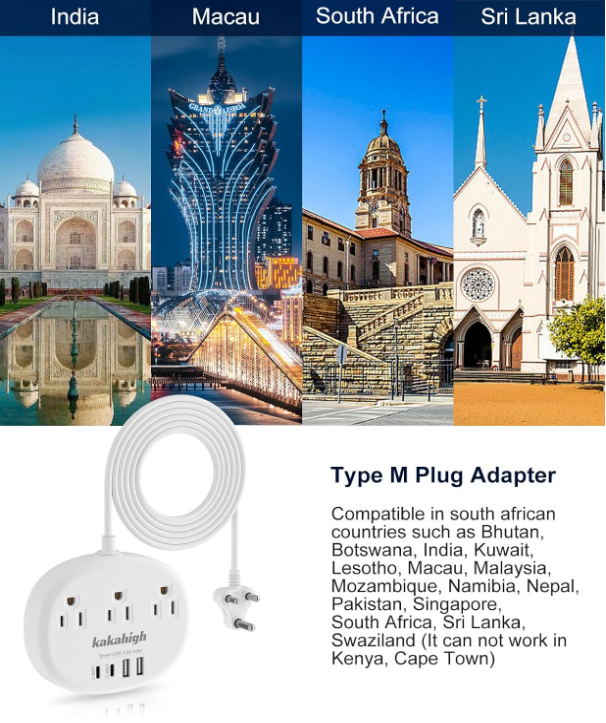 Free eBay listing template designed by dewiso.com South Africa Plug Adapter, Type M Adapter for South Africa with 3 American Outlets 4 USB Ports (2 USB-C) Total 24W -FREE AND FAST 2-3 DAYS DELİVERY- About this item: 【South Africa power adapter】 Compatible in most overseas countries such as Bhutan, Botswana, India, Israel, Lesotho, Macau, Malaysia, Mozambique, Namibia, Nepal, Pakistan, Singapore, South Africa, Swaziland (Eswatini), Sri Lanka (It can not work in Kenya). Ideal for traveler, business and study abroad use in airports, hotels and dorm room. 【7 in 1 South Africa Outlet Converter】The South Africa plug adapter accepts the standard N American 2 or 3 prong plug, max capacity up to 2500 watt (max 250 Volt, 10 A); Compatible with cellphone, laptop, tablet, earphone or cameras without a variety of plug converters, keep your desktop organized. 【 Compact and Lightweight】At only 9 oz, 4.3*3.3*1.1 inch small design make usa to south africa plug adapter for travel easily fit into your luggage and briefcases; No surge protection, 3 Ft extension cord let the south africa outlet converter fully cruise ship approved. Certificated by ETL & UL, it is 100% safe for you to use it.The blue indicator let you know the power is on/off. 【South Africa Power Strip with USB C Ports】Compare with other 15W power strips, the south africa extension cord provice 2 usb-c for Apple devices, each can charge up to 5V/2.4A Max, all usb ports output is 5V/4.8A, 24W max. South Africa charger adapter with smart charging technology, it can automatically detect your connected devices and can achieve faster charging efficiency, which would charge your devices WITHOUT a variety of converters. The Type-C port doesn't support Macbook Pro or any other laptops which needs 14~22V ch. Note: Plug adapter for south africa is not a voltage converter. Only works on 100V to 250V wide voltage devices. If you want to use your hair dryer, straightener or curling irons, they need to support wide voltage, or you may need a power voltage converter. Contact us We can be contacted at any time through eBay messages if you have any questions, comments or product requests. We will respond to you within 24 hours and do our best to help you out! We encourage our customers to contact us with any questions or concerns! We'd like to be sure you are completely satisfied with your purchase. Payment Lorem ipsum dolor sit amet, consetetur sadipscing elitr, sed diam nonumy eirmod tempor invidunt ut labore et dolore magna aliquyam erat. labore et dolore magna aliquyam erat. Shipping Lorem ipsum dolor sit amet, consetetur sadipscing elitr, sed diam nonumy eirmod tempor invidunt ut labore et dolore magna aliquyam erat. labore et dolore magna aliquyam erat. Disclaimer Lorem ipsum dolor sit amet, consetetur sadipscing elitr, sed diam nonumy eirmod tempor invidunt ut labore et dolore magna aliquyam erat. labore et dolore magna aliquyam erat.