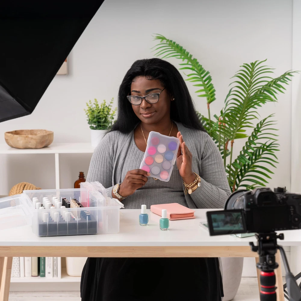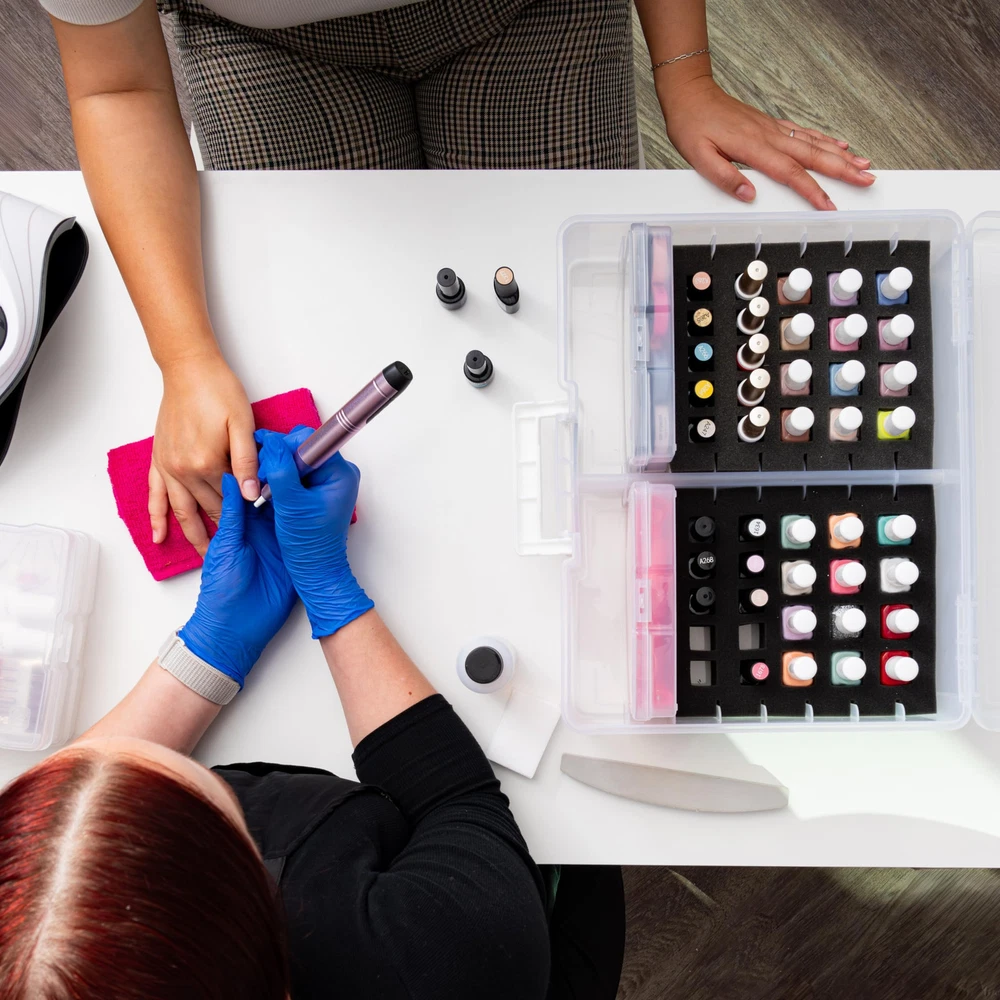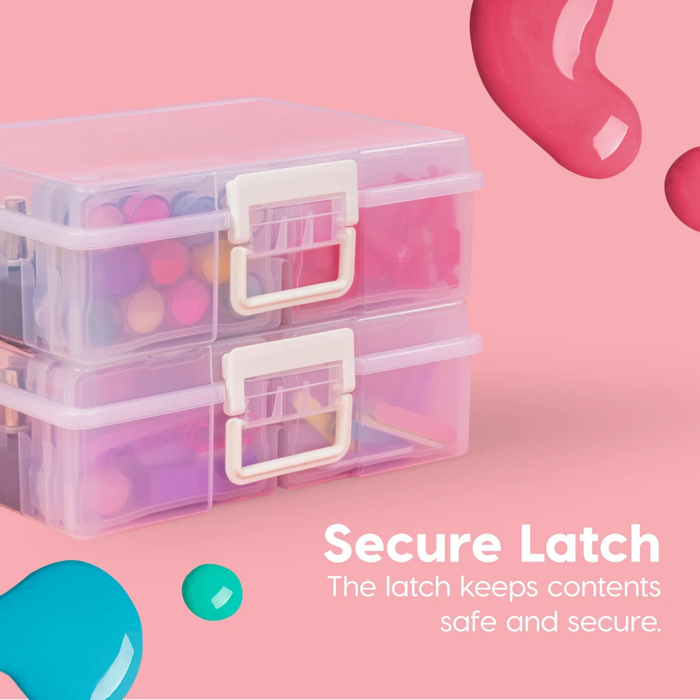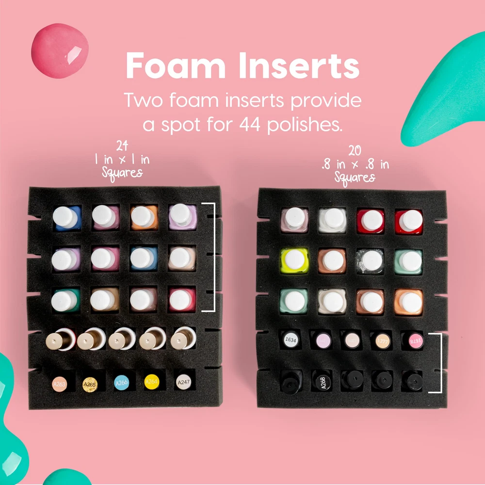 Elevate your organization game with our Portable Plastic Cosmetic Train Case, designed for professionals and enthusiasts alike. This sleek and durable case offers unparalleled convenience and protection for your essential tools, cosmetics, or craft supplies. Built to withstand the rigors of travel and daily use, this case features a robust plastic exterior that guards against impacts and inside, you'll find foam inserts that are perfectly sized to fit your nail polish, essential oils, and makeup bottles securely. Each case features 4 inner cases to keep loose tools, nail tips, small accessories and supplies organized and within reach, giving you a -stop-for all of your beauty needs. Equipped with a comfortable, ergonomic handle and secure latch, this case is easy to carry and ensures your contents remain in place and easy to find. Perfect for makeup artists, hobbyists, technicians, and anyone who needs a reliable storage solution. Whether you're transporting tools, cosmetics, or other essentials, this train case has you covered. The case features a transparent design with clean lines and a glossy finish, making it not only functional but stylish as well. Upgrade your storage with our Portable Plastic Train Case and enjoy the perfect blend of durability, customization, and portability. Ample Storage Capacity: Ingeniously crafted to accommodate a collection of 44 nail polish or essential oil bottles and four dedicated cases for tools and other supplies. Compact with ample storage space inside, keep all of your cosmetology tools on hand and ready to go. Taking your business to friends and clients has never been easier. Advanced Protection System: Designed for delicate items like nail polish, essential oils, and miniatures, it features integrated foam padding for superior safeguarding. With carefully crafted compartments, it prevents spills, breakages, and damage. Plus, it offers an extra layer of defense against sun exposure, keeping your cherished products protected. Thoughtful Case Design: Keep your cotton pads, nail files, gems, and other accessories neatly organized and easily accessible whenever you need them. No digging through cluttered drawers or searching for misplaced items—everything is conveniently at your fingertips and easy to find thanks to the transparent design of the cases. Stackable and Secure Storage: Stack multiple train cases on top of each other to create a customized storage solution that fits your collection and space and makes traveling a breeze. The latching system ensures that your nail polishes and tools remain securely in place through every bump in the road, giving you peace of mind and a clutter-free environment. The Perfect Size: Each nail polish holder organizer case measures 12.08"L x 14.98"W x 5.05"H; Each inner case measures 4.75"L x 6.7"W x 1.2"H; Each foam insert contains 10 spots of 0.8" squares and 12 spots of 1.0" squares.