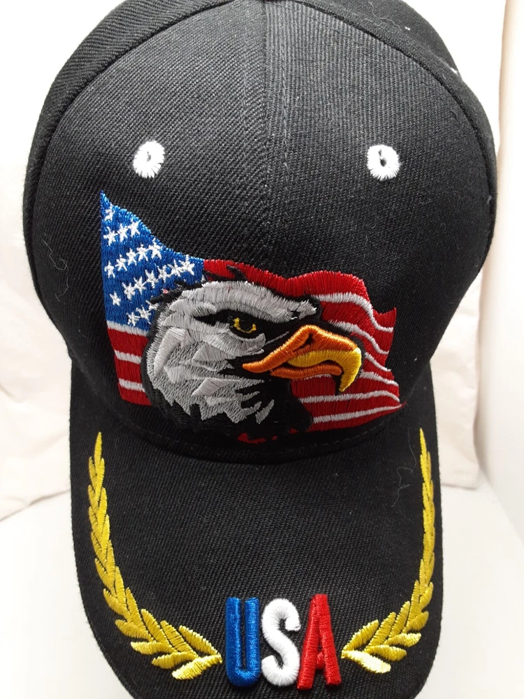 USA Embroidered Ball Cap/Hat with Flags and Bald Eagle Red, White and Blue