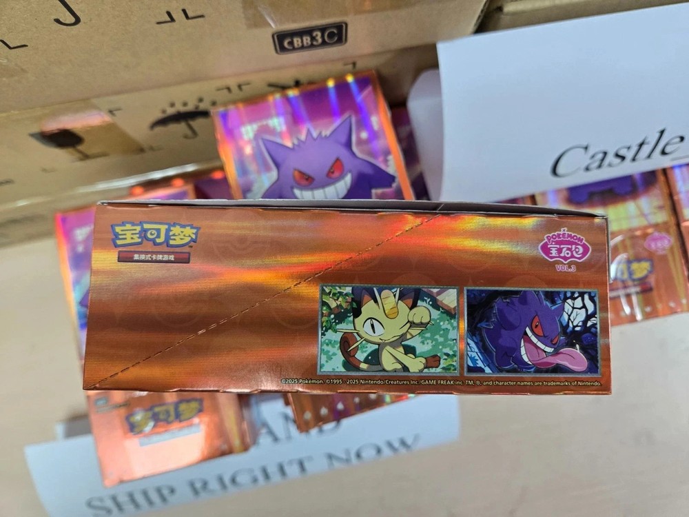 Nintendo Official Pokemon Chinese Products: The boxes is all new without Shrink Wrap.Apply film to the sealing area. The box status is shown in the picture. ON HAND! SHIPPING FAST! USA STOCK Pokemon Gem Pack Vol.3 S-Chinese Booster Box CBB3C without Shrink Wrap 🔥 Product Description: Discover the latest Pokémon TCG set with the Chinese Horizons Gem Pack Booster Box! This highly sought-after expansion, available in Simplified Chinese , introduces powerful new cards, stunning artwork, and exciting pulls for both collectors and competitive players. 100% Nintendo Authentic Product, got rate to pull out five Chinese exclusive AR cards. 📦 Box Contents: 1 Gem Pack vol 3 Booster Box The boxes is all new without Shrink Wrap.Apply film to the sealing area. The box status is shown in the picture. Contains 18 Booster Packs Each pack includes 4 cards Chase rare cards, including EX cards, Special Art Rares, and more! 📌 Limited Stock – Order Now Before It’s Gone! 100% Nintendo authentic pokemon products ! Please note this is Chinese Version ! Chinese Pokemon Card has blue back like English version. 100% authentic nintendo products, made in Japan, released in China Mainland.