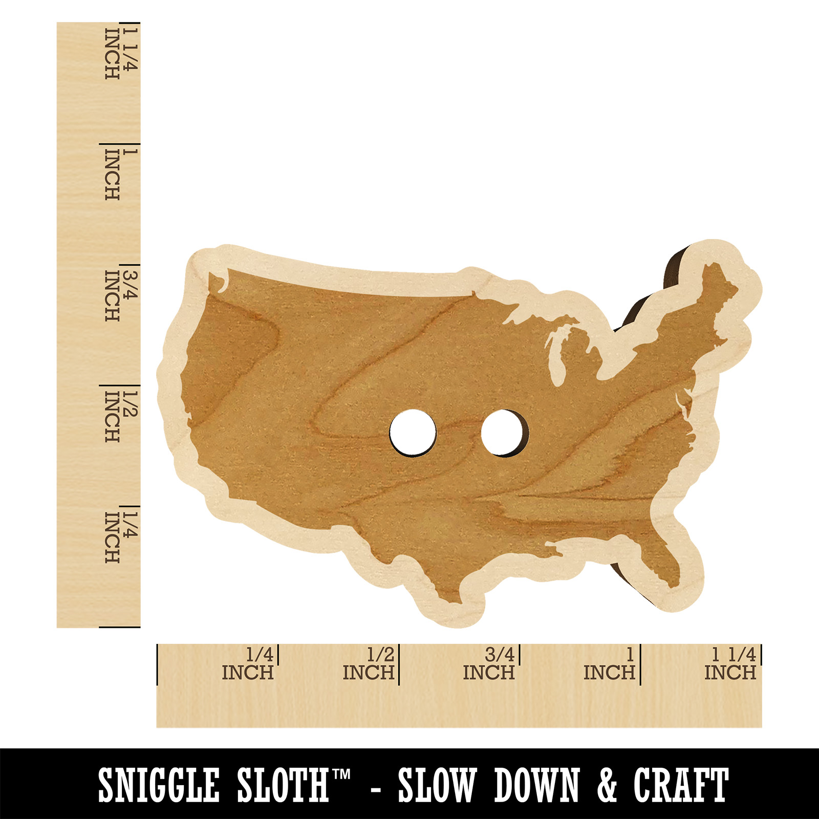 USA United States America Country Silhouette Wood Buttons for Sewing DIY Craft