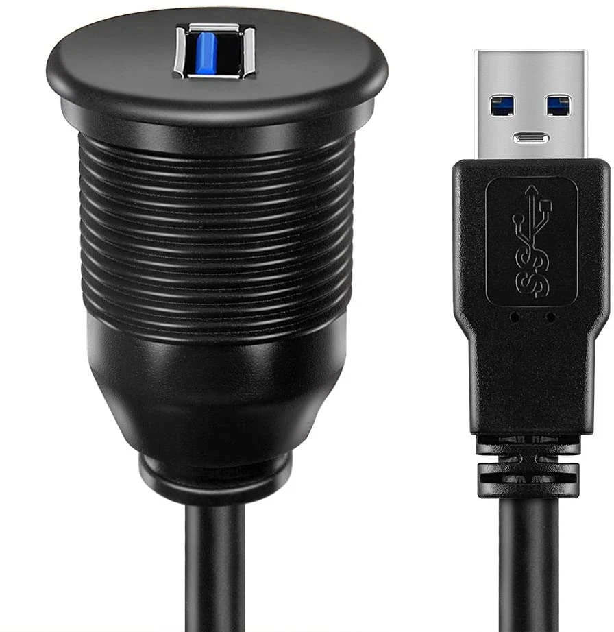 Dash Flush Mount USB Extension Mounting Dashbard Dock High Speed USB3.0 extension cable with USB Input for vehicle, marine, bike, motocycle & etc Come with accessories such as screws, braceket, flush mount components & cover for installation on dashbaord or other surface Connects devices that use USB Type A ports Diameter X Height: 1.26" X 1.77", easily snap in 28 to 30 mm hole, 3 feet - 1 meter long cable Product Description USB 3.0 Male to USB 3.0 Female AUX Flush Mount Features: Comes with waterproof kit to protect the port(s) against water and dust Support USB 3.0 and backward compatible with USB 2.0 and 1.0 Serve both charging and data sync function Wide Application Applicable to control panel, dashboard, workstation & etc Water & Dust Proof Comes with water & dust proof kit Perfect Size Easy to install onto panel and dashboard Suitable for: Car, boat, yacht, bike, workstation and etc Package Content: 1 X USB 3.0 flush mount cable 1 set of accessories