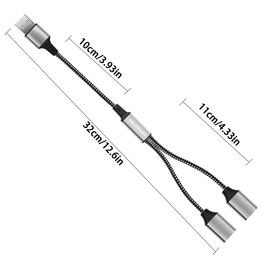 USB splitter 2 port usb 2.0 y cable printer share lead female, support 480Mbps Data Transfer and charging. Give you the ability to connect two devices to two standard USB-A port when you want extra flexibility. Ideal for mouse, keyboards, cameras, smartphones ; not recommended to charge high-powered devices such as tablets. Specification: Function: Data transmission + charging 1. when two USB A port are in use at the same time, only supports charging 1.5 Amps of power output and USB 2.0 functions. 2. Do not support Audio/Earphone & microphone signals. 3. Devices Simultaneous Charging:Use two devices at the same time without hassle. Durable: The usb 2.0 splitter made with aluminum shell and nylon braided jacket to withstand daily twists and pulls, rust free,which is lightweight and easy to carry. Plug and play, no driver. Packing List: 1x USB Y Splitter Cable 1 Male 2 Female USB splitter 1 in 2 out: This USB 1 Male to 2 Female Extension Cord Connector can split a USB port into 2 usb port for connecting 2 USB A port devices to your desktop laptop at the same time. Do not support Audio Earphone and microphone signals 2 USB Female Support data transfer and charging: This usb otg adapter splitter cable offers an easy way to extends your USB port. It can provide data transfer speeds of up to 480 Mbps and also supports up to 1.5 Amps of power output Note: This USB 2.0 Y Splitter Charger Cable CANNOT charge IOS devices. And not work for car audio, Andriod Auto . As these systems do not support USB hubs Plug and play: There is no additional drivers or software installation required. You can simply plug it in your device and start using it.An easy way to extends your USB connection to the computer or laptop Widely Use: This USB Splitter Cable is commonly used in USB 2.0 device, the usb c female port and the USB female port compatible with USB Charger Cable,USB Flash Disk ,USB Contoller,Hard Drive,Mouse,Keyboard etc