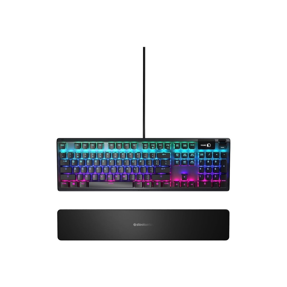 The apex 5 combines the high performance and click tactile feel of a mechanical keyboard with the extreme durability and convenience of ip32 water resistance. Built from the ground up for gaming, it also includes a premium magnetic wrist rest, OLED smart display, and per-key rgb. The apex 5 is the perfect hybrid between gaming and real life. Hybrid mechanical gaming switches – The tactile click of a blue mechanical switch plus a smooth membrane OLED smart display – Customize with gifs, game info, discord messages, and more. OS-Windows, Mac OS X, Xbox, and PlayStation. USB port required Aircraft-grade aluminum alloy frame – Manufactured for unbreakable durability and sturdiness Dynamic per-key RGB illumination – Gorgeous color schemes and reactive effects for every key Premium magnetic wrist rest – Provides full palm support and comfort 900 x 300 x 4 millimeter; 35.43 inches x 11.81 inches