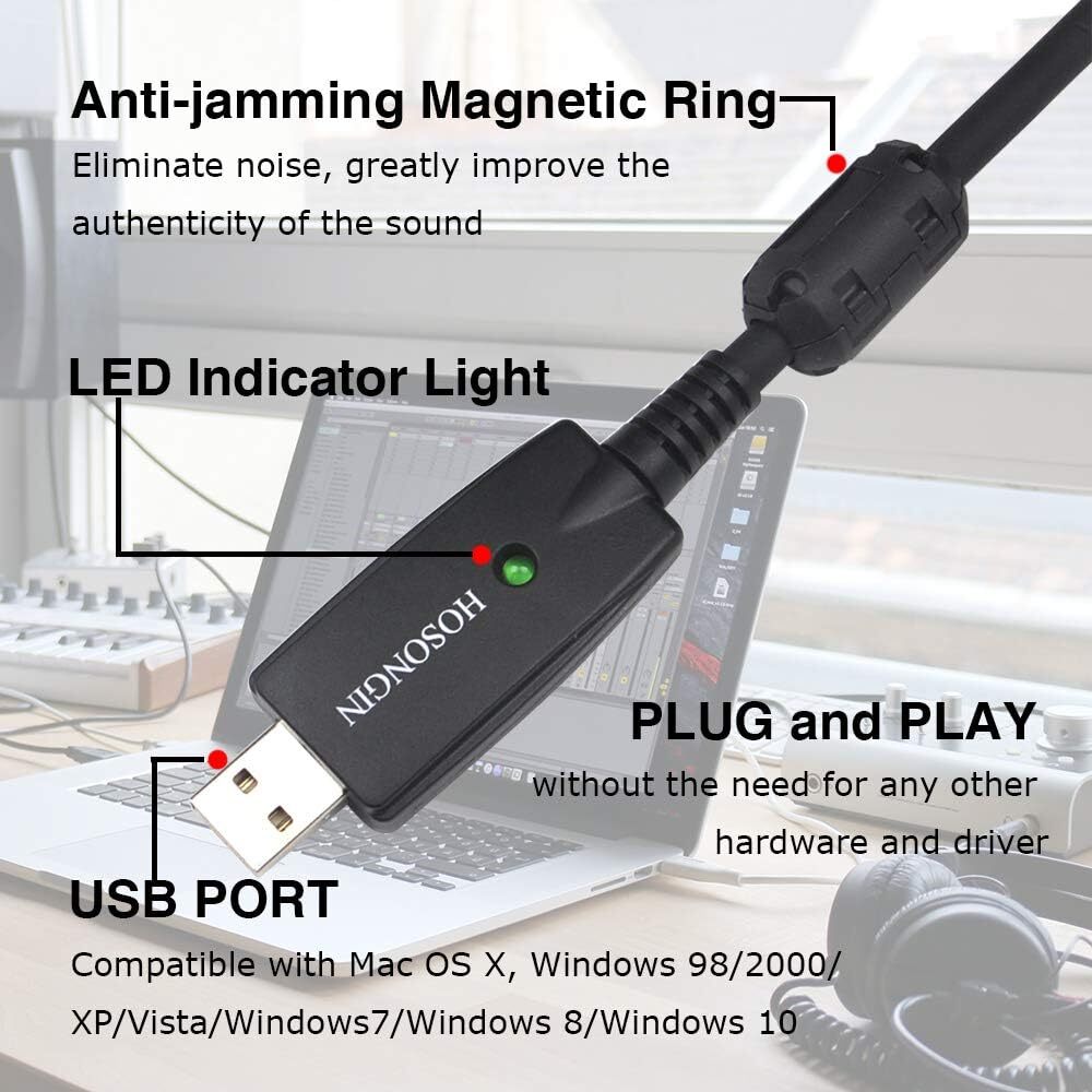 $ 7.92USB Audio Adapter with 48V Phantom Power for Condenser Mics 3.3ft Cable