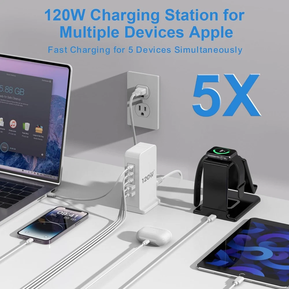 HomeUSB C Charger Block 120W GaN Fast Charging Station for Multiple Devices USB