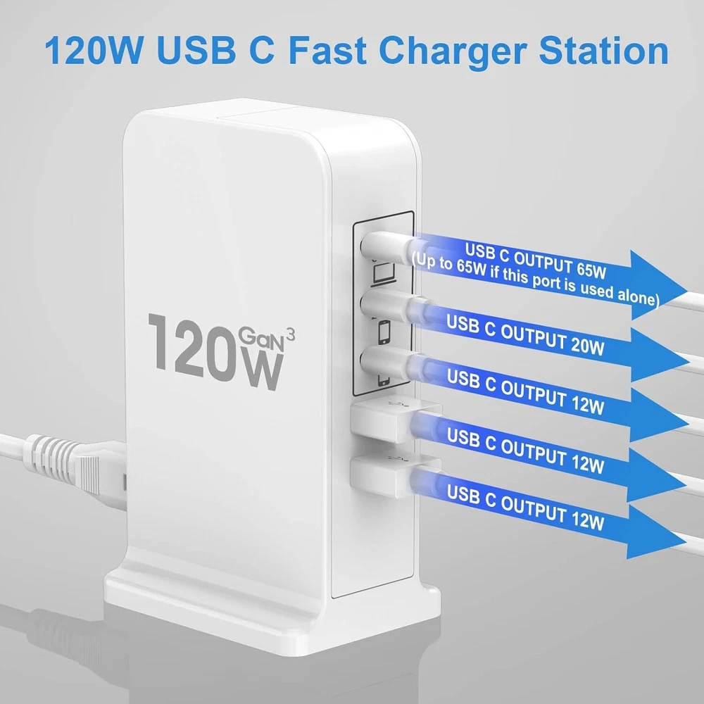 USB C Charger Block 120W GaN Fast Charging Station for Multiple Devices USB