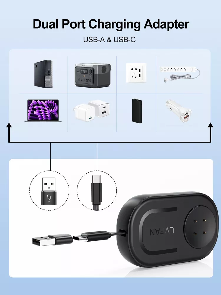 【Wide Compatibility】 The telescopic charger is compatible with Apple Watch Series 10/9/8/7/6/5/4/SE/SE2/Ultra/Ultra2 ( including the 38mm/40mm/41mm/42mm/44mm/45mm/46mm/49mm Version) 【Flexible Retractable Design】 The retractable charger comes with a built-in retractable charging cable that freely retracts up to 27.5 inches and has been tested to over 50000+ retraction tests. Whether you extend or retract, it's all up to you! NOTE: Gently pull and extend the cable by 1 cm, then release it. The cable will automatically retract and be neatly stored 【Dual-Port Charging Universal】 Built-in USB-C and USB-A dual-port design, suitable for universal types of power ports in daily life, you can plug the charger into power bank/laptop/wall adapter/car charger/power strip or other devices with USB-A or USB-C charging ports to charge your iWatch 【Neat & Tidy】 The unipue retractable cable could automatically retract back inside for storage, keeping neat and tidy at home, office or while traveling, without tangling the cable, and eliminating space clutter. Say goodbye to tangled cables and a messy charging environments 【Fast & Reliable Charging】 The upgraded Apple watch charger boasts enhanced magnetic strength, securely holding the watch in place. With a stable output current and voltage, it ensures safe and rapid charging without risking damage to the watch. With the latest watch wireless charging chip, it only takes 2-3 hours to fully charge the watch 【You Will Get】 1*2.3ft/70cm USB-A & USB-C Apple Watch Charger Cable, 1*User Manual. Should you have any queries regarding our product, kindly reach out to us directly for prompt resolution