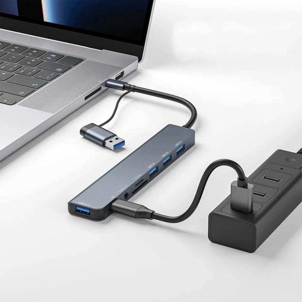 This versatile VIENON USB C Hub features a combination of USB-A and USB-C ports, providing compatibility with a wide range of devices including MacBook Pro, MacBook Air, PS4 Pro, and more. It boasts 8 ports, including 1 USB 3.0, 3 USB 2.0, 1 USB C, SD/TF card reader, and 3.5mm audio jack. With transfer speeds of up to 5Gb/s for USB 3.0 and 480bps for USB and USB-C 2.0, it allows for efficient transfer and download of various files. This hub is compatible with most devices, including PC, laptop, and phone/tablet with a Type C port. It is also suitable for a variety of applications, such as connecting peripherals, printers, and cameras. Made with an aluminum alloy shell, it is both durable and provides quick heat dissipation. The flexible and sturdy cables ensure a stable connection between devices.
