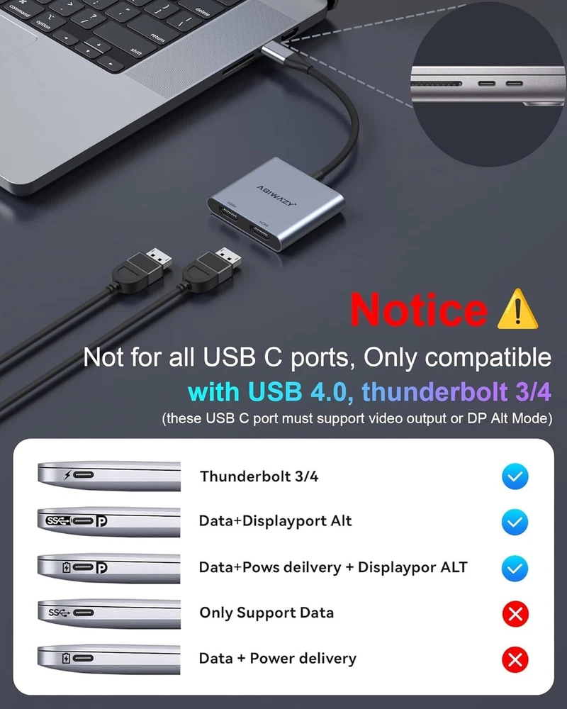 This USB C to Dual HDMI Adapter allows for seamless connection to two monitors, making it perfect for multi-tasking or sharing content with others. The adapter features a 1:2 connetion split/duplication and supports 4K@60Hz resolution, ensuring high-quality visuals for all your computing needs. The HDMI Standard Female connectors on both ends of the cable make it easy to connect to your monitors, while the 1ft cable length provides flexibility in your setup. This Splitter Cable is ideal for those who require a reliable, high-quality connection for their computers.