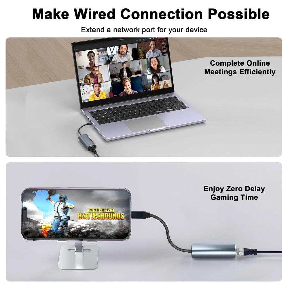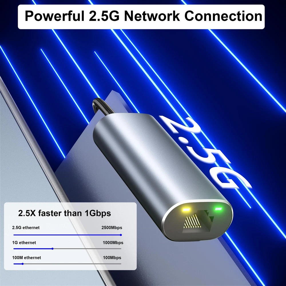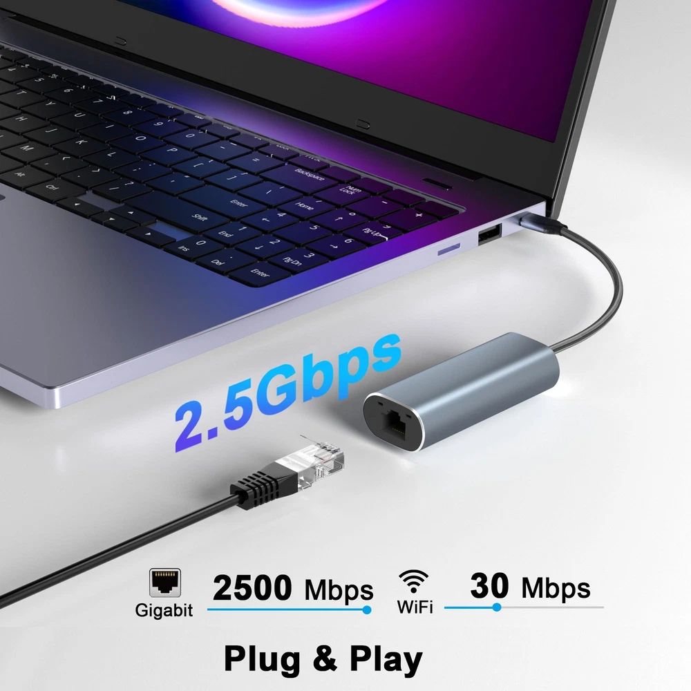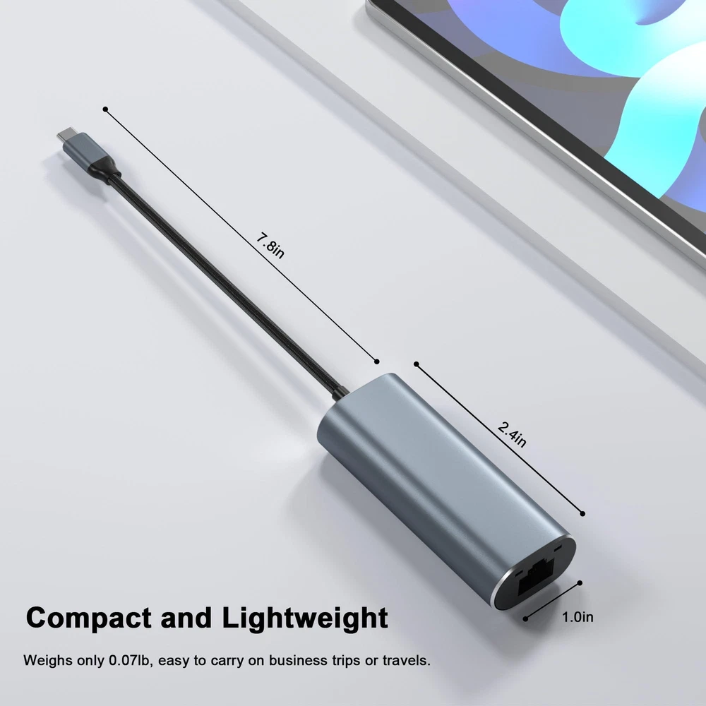 【USB-C to 2.5G Ethernet Adapter】Convert your USB Type-C port into a high-speed ethernet connection with this adapter. Experience speeds up to 2.5Gbps, significantly faster than standard gigabit adapters, facilitating swift data transfers over your network. Perfect for users prioritizing stability in their Internet connection. 【High-Speed 2.5G Network Connection】Harnessing USB 3.2 performance, this USB C ethernet adapter offers 2.5G bandwidth, ideal for office and home settings. Access large files swiftly, saving time. With plug-and-play functionality, it seamlessly connects to PCs, tablets, phone and more. Enjoy top-notch performance for online gaming and HD video streaming with the ultra-fast 2.5Gbps adapter. 【Compact and Portable Design】 This USB C to ethernet adapter is ideal for laptop or Phone use, with no need for an extra power adapter as it draws power directly from the USB-C port. Crafted from aluminum for excellent heat dissipation, its sleek space gray color complements thin laptops. Its compact size and lightweight build make it perfect for business trips or travel. 【Wide Compatible】:Works with devices featuring a USB C port, compatible for iPhone 15 series, MacBook (2017-2023), iMac, iPad Pro 2020, ASUS ROG GL/G5/G7, Thinkpad P 50/70, Galaxy S21/S20/S10, Mate 30 Pro/Mate 10 Pro/P40 Pro/P10 Plus and more.Note: Not compatible with Nintendo Switch. 【Replacement for wireless connection】 USB C to ethernet adapter are handy for connecting devices without LAN ports to the Internet securely. By using a wired connection instead of Wi-Fi, you reduce the risk of interference and enhance security. If you lack a wired connection, utilize a LAN adapter for safe and efficient work.