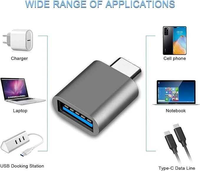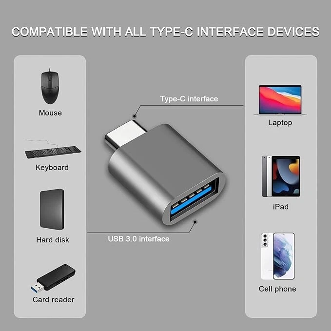 Free eBay listing template designed by dewiso.com USB C to USB Adapter, Type C Thunderbolt 4 OTG Converter, USB C Male to USB 3.0 Female Adapter (3-Pack) for Apple MacBook Pro, Mac Book, iPad, Samsung Galaxy S20-S23 and More (Black/Grey/Silver) Premium Materials and Design: Our adapter features an anti-interference zinc alloy metallic housing with a minimalist design, ensuring a stable and reliable connection every time. The slim design wonβt block adjacent ports, significantly enhancing usability Broad Compatibility: This adapter is compatible with iPhone 15 series, MacBook Pro after 2016, MacBook Air after 2018, and most laptops, tablets, and smartphones with a USB Type C port, meeting a wide range of device needs High-Speed USB 3.0 Transfer: Supporting USB 3.0 protocol, it provides high-speed data transfer and charging. Simply insert the USB C plug into the corresponding port of your device to connect flash drives or other standard USB A devices, allowing for data synchronization or phone charging Durable Connectors: The USB C and USB 3.0 connectors are engineered for enhanced durability, designed to withstand up to 10,000 plug and unplug cycles. Each adapter is made from spacecraft-grade aluminum alloy, offering excellent durability with vibrant coatings that enhance the device's appearance Economical and Practical: Our three-piece adapter set offers high quality at an affordable price. Each set includes three adapters, providing a better user experience and higher cost-effectiveness Contact us We can be contacted at any time through eBay messages if you have any questions, comments or product requests. We will respond to you within 24 hours and do our best to help you out! We encourage our customers to contact us with any questions or concerns! We'd like to be sure you are completely satisfied with your purchase. HAVE A NICE SHOPPING