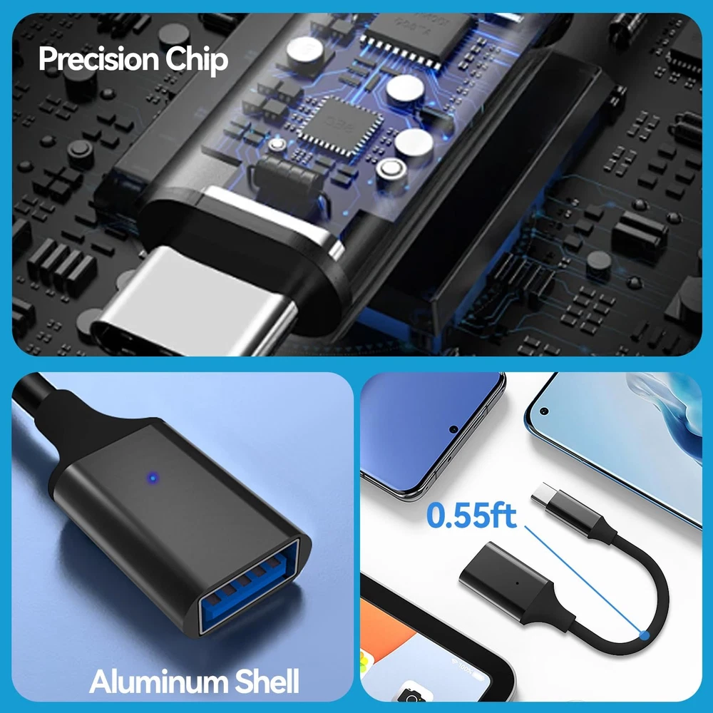 USB C to USB 3.0 Adapter [2 pack], Thunderbolt 3 to USB Adapter OTG Cable for iPhone 15/15 Pro/15 Plus/15 Pro Max, Macbook Pro/Air, Galaxy S20 【USB 3.0 Super Speed Transfer】: Full USB 3.0 super speed data transfer up to 5Gbps, 10x faster than USB 2.0. Transfer files, HD movies and songs to your USB C devices in seconds. 【ON-THE-GO - Plug & Play】: No driver required. Provides a seamless user experience when connecting webcam, mouse, Bluetooth receiver and keyboard. 【Aluminum Body】: Made out of sturdy aluminum alloy, innovative engineering ensures durability and a long life span. 【Wide Compatibility】This is a flexible and durable usb-c to usb adapter. Compatible with iPhone 16, 16 Plus, 16 Pro, 16 Pro Max, iPhone 15, iPhone 15 Pro, iPhone 15 Pro Max, iPhone 15 Plus, iPad Air 5/4, iPad Mini 6, iPad Pro 12.9 6/5/4/3, iPad Pro 11 3/2/1, MacBook Air M2 15in/13in, MacBook Air M1, MacBook Air Retina 13in, msung Galaxy Note8 S9/S9 Plus S8/S8 Plus, Compatible with New Macbook Pro,LG G6 G5 V20 and other USB Type-C devices. 【Indicator light】: This OTG adapter has a working indicator light, which can facilitate you to check the working status of the equipment better and more convenient in the use of the project. 【What you get】: We provide this USB C OTG Adapter with Five years Warranty and 24/7 customer service, if you have any questions,we will resolve your issue within 24 hours.