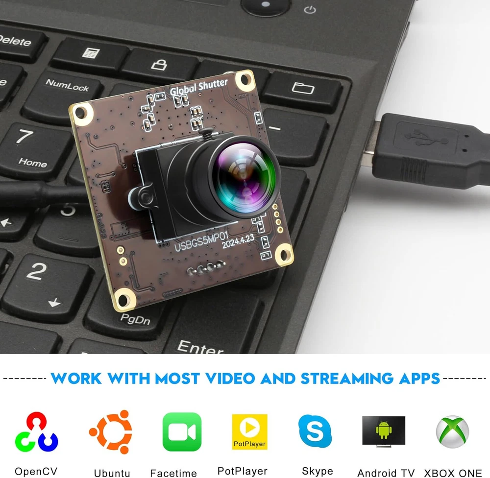 USB Camera Global Shutter 50fps High Speed USB Camera Module for Computer Wide Angle No Distortion Lightburn Camera Laser Engraver PC Camera for Motion Capture Face Recognition Codes Retails for $171.99 + tax on Amazon Global Shutter USB Camera: Stereo global shutter usb camera shoot high speed moving objects in crisp sharp images. Avoid the rolling artifacts to get a much more accurate complete picture than the rolling shutter cameras. The global shutter sensor's excellent low-light sensitivity makes it crisp, sharp, and accurate colorful images even for high-speed moving objects. 50fps High Speed Camera: High shutter speed usb camera based on the 1/2.5" global shutter OX05B1S color image sensor, max resolution :2592x1944@50fps MJPEG. Fast frame for for high-speed moving objects shooting, perform better in any application that needs gesture and eye tracking, iris and physiognomy recognition, depth and motion detection. 100 Degree Wide Angle No Distortion Lens: USB lightburn camera module with 100 degree low distortion wide angle lens, HFOV: about 84 degree, VFOV: about 68 degree. Super small and mini size for your lightburn laser engraver. Compact lightburn laser camera for all kinds of machine vision. Free Driver USB2.0 Plug and Play: IFWATER global shutter usb camera UVC compliant, just connect the camera to PC computer, laptop, Android device or Raspberry Pi with the USB cable without extra drivers to be installed. Wide Applications: Global shutter high speed usb camera module perfect for shooting fast moving objects, 3D Printer, Live Education Show, Medical Machine, Industrial Camera, Live Streaming, Golf Games, Plate License Recognition, Road Monitoring, Automation Production, etc. Retails for $171.99 + tax on Amazon